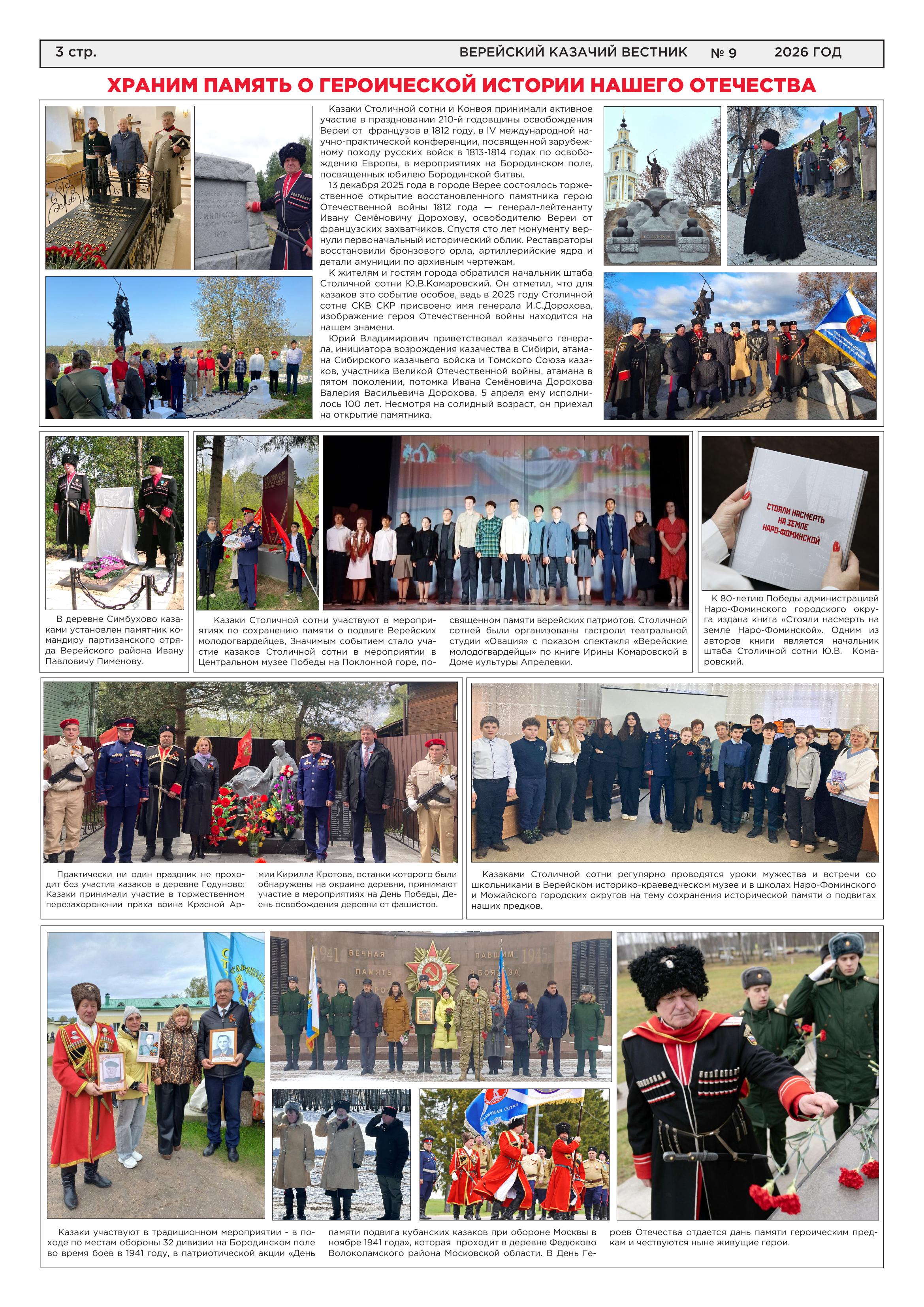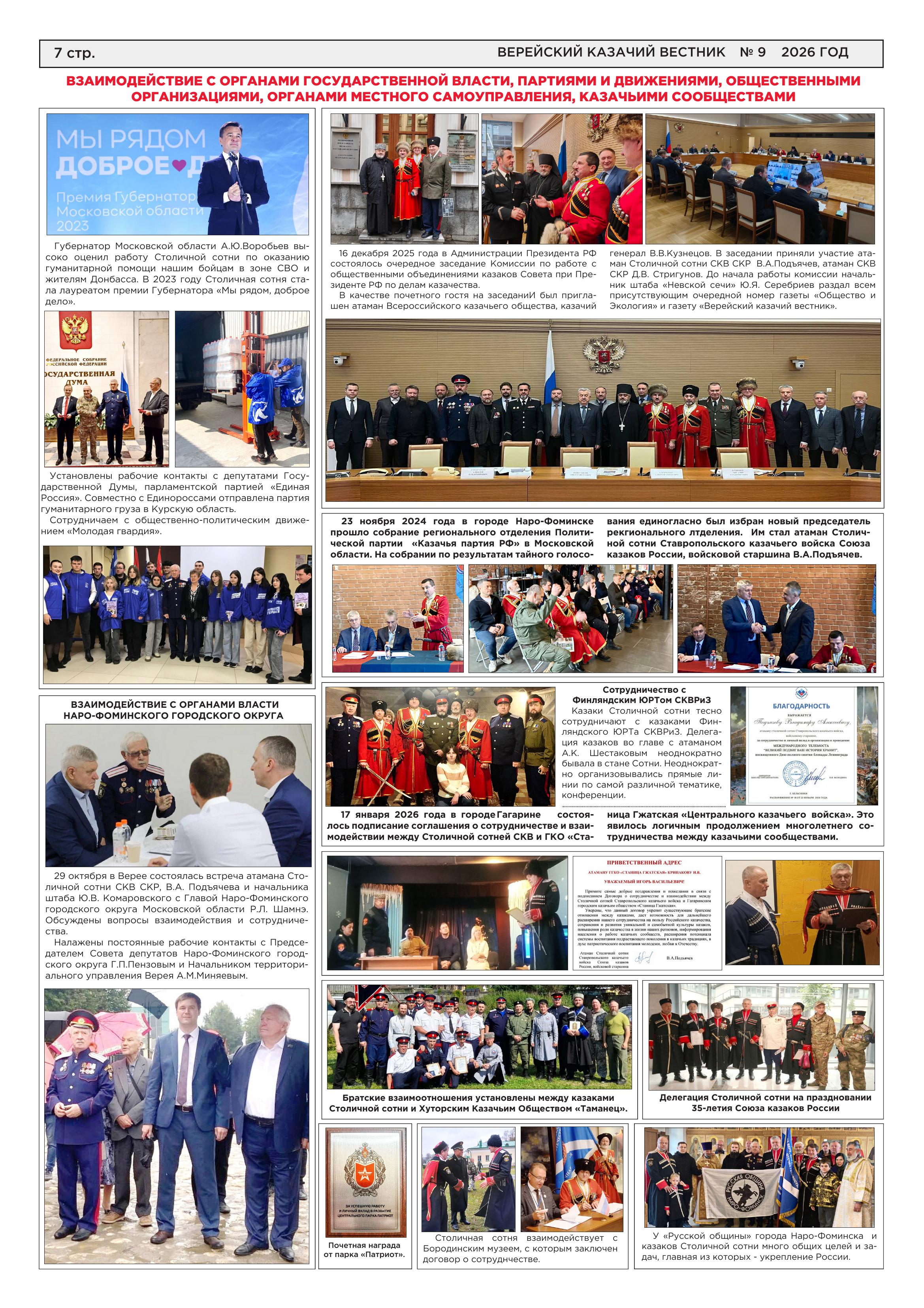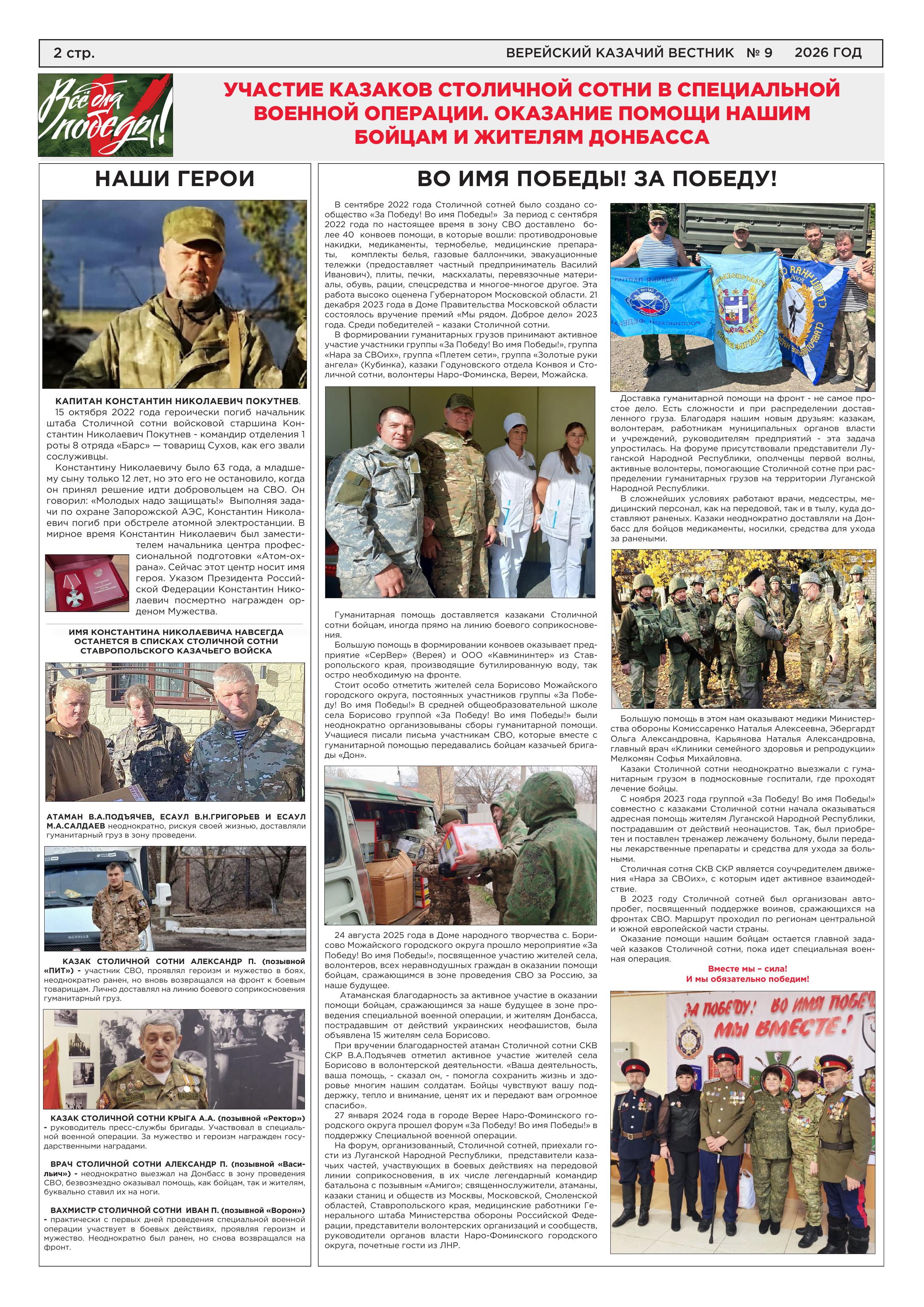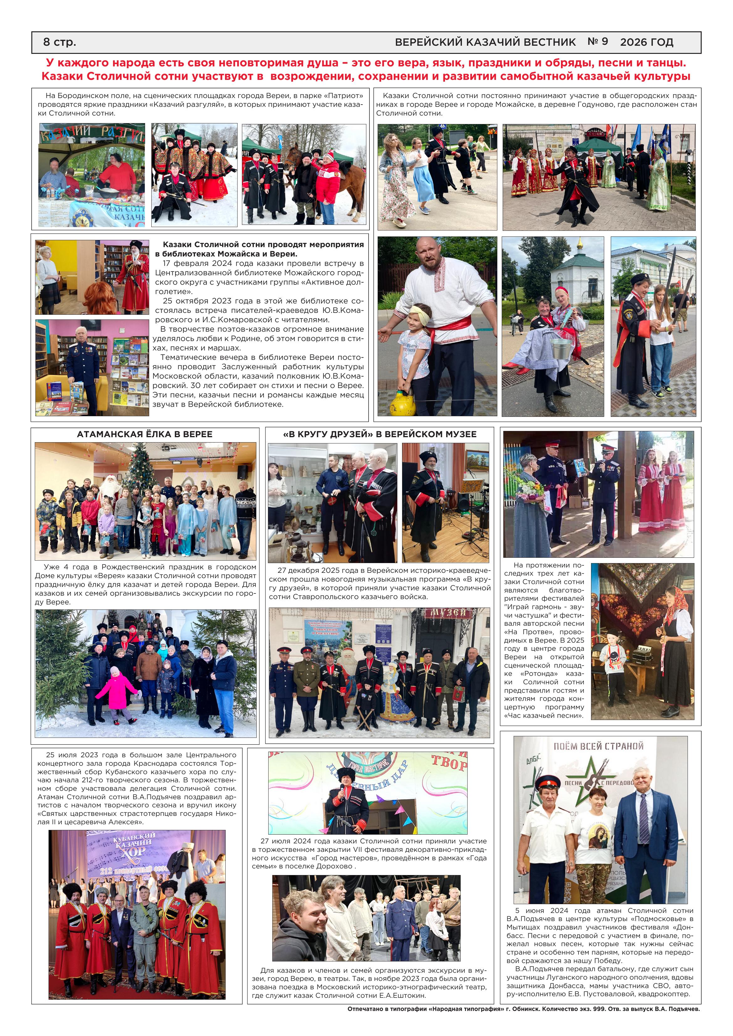 Газета «Верейский казачий вестник» №9 февраль 2026 год
