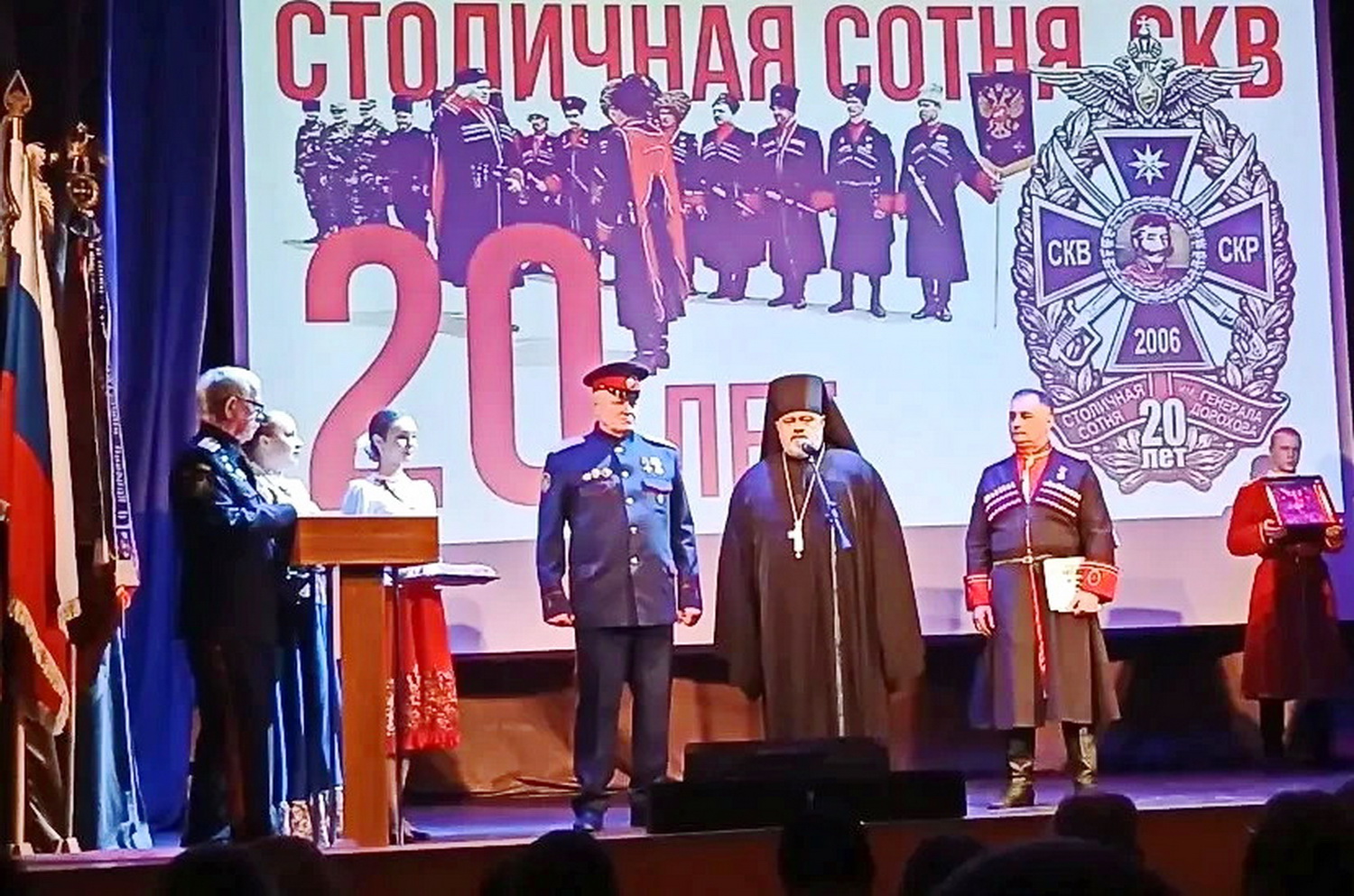 Торжественное мероприятие, посвящённое 20-летнему Юбилею Столичной сотни Ставропольского казачьего войска Союза казаков России прошло 21 февраля 2026 года в городском доме культуры города Вереи