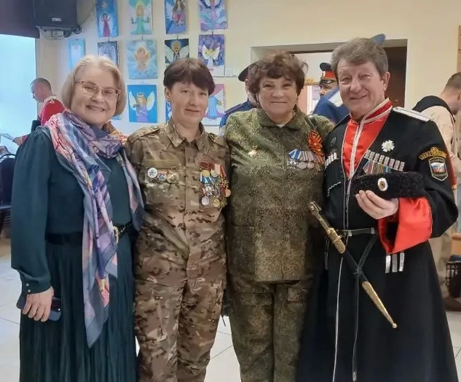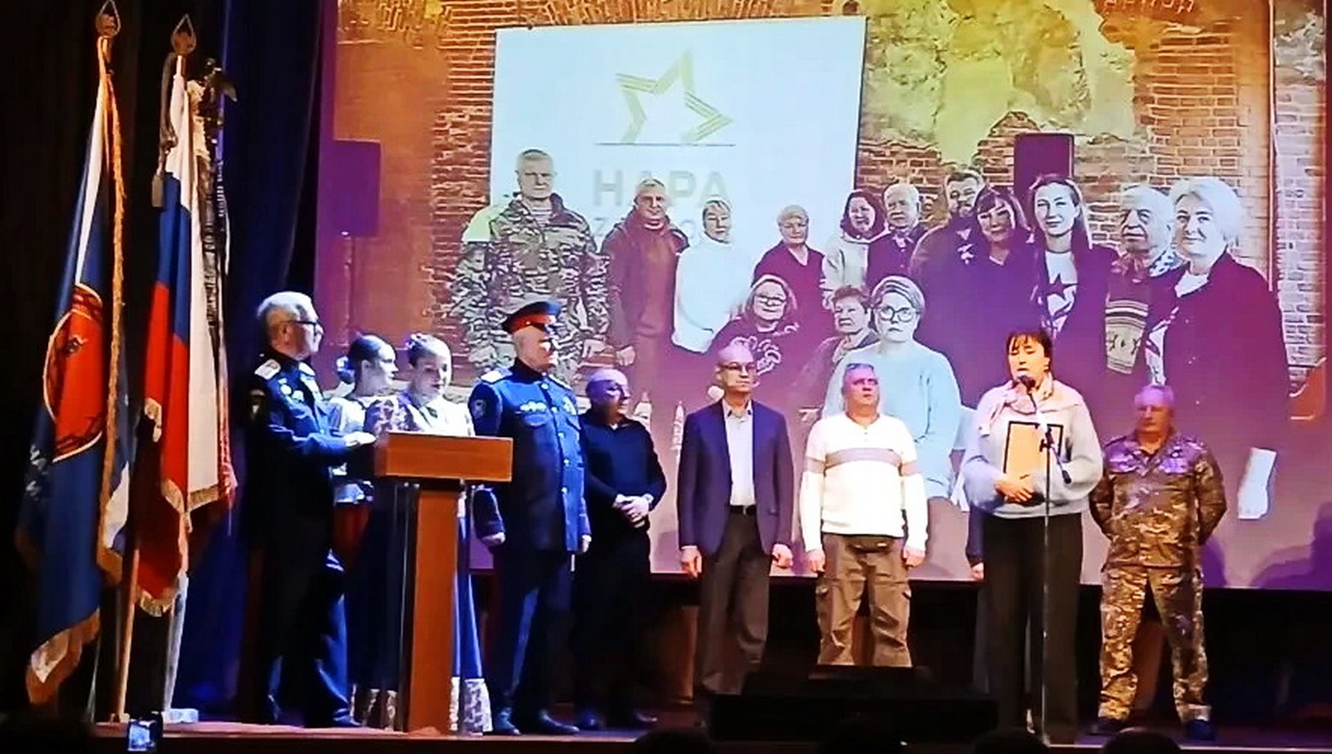 С приветственным словом к собравшимся обратилась координатор общества «Нара за СВОих» С.П. Тертышная. Она отметила совместную работу с казаками по сбору гуманитарной помощи. Вместе со Светланой Петровной на сцену вышли активные волонтеры, которым была высказана благодарность от Атамана Столичной сотни В.А. Подъячева и вручены награды.