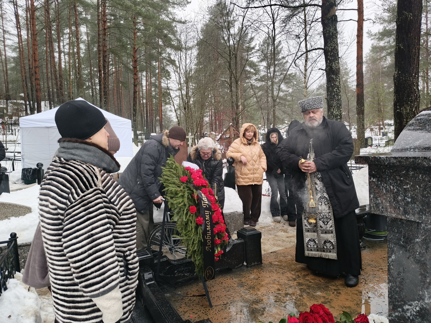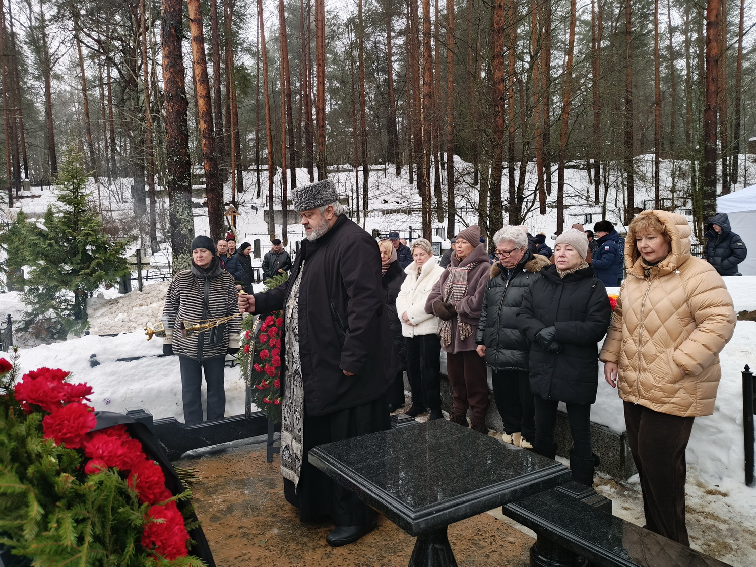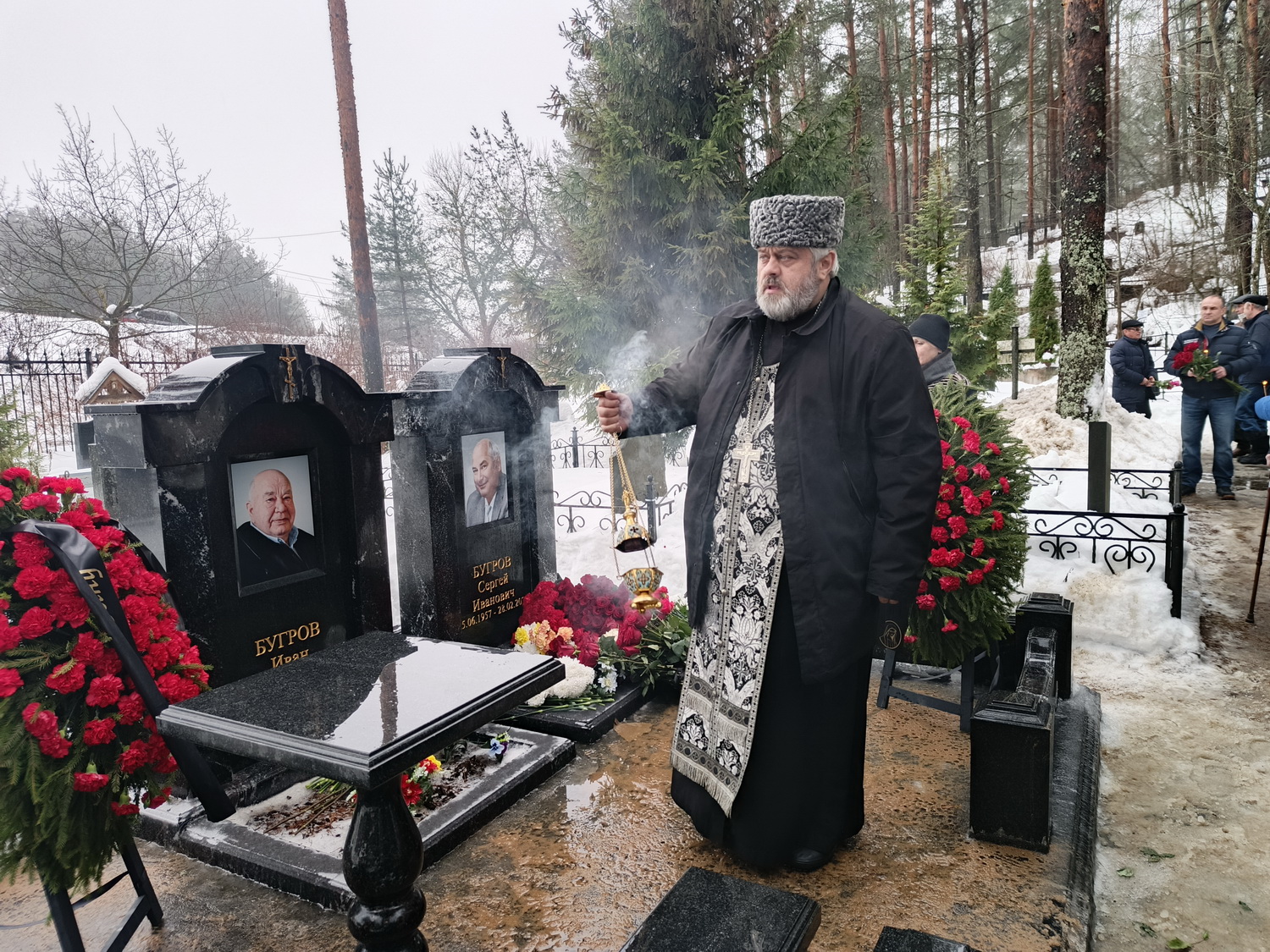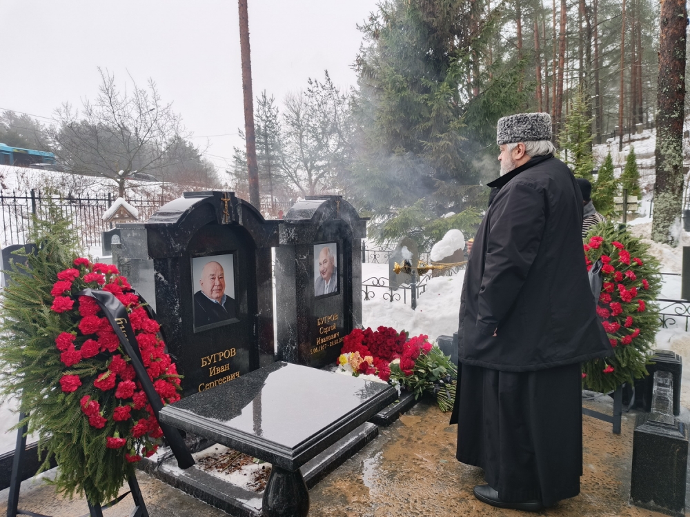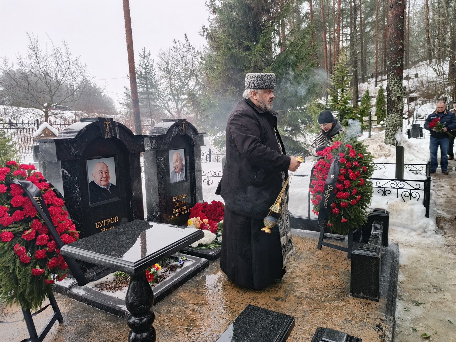 Настоятель храма Тихвинской иконы Божией Матери Сестрорецка архимандрит Гавриил (Коневиченко) отслужил заупокойную литию у могилы Сергея Ивановича Бугрова на городском кладбище Сестрорецка.