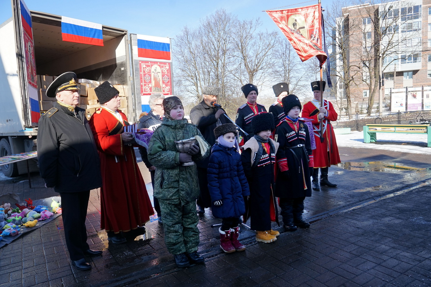 7 марта 2026 года в Курортном районе Санкт-Петербурга, в городе Сестрорецке дан старт 36-му гуманитарному конвою, который 8 марта отправился на Донбасс прямо с казачьего плаца у Духовно-просветительского центра при храме Тихвинской иконы Божией Матери города Сестрорецка.