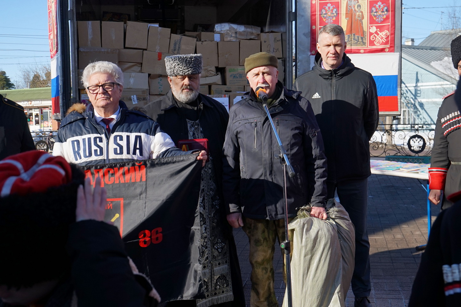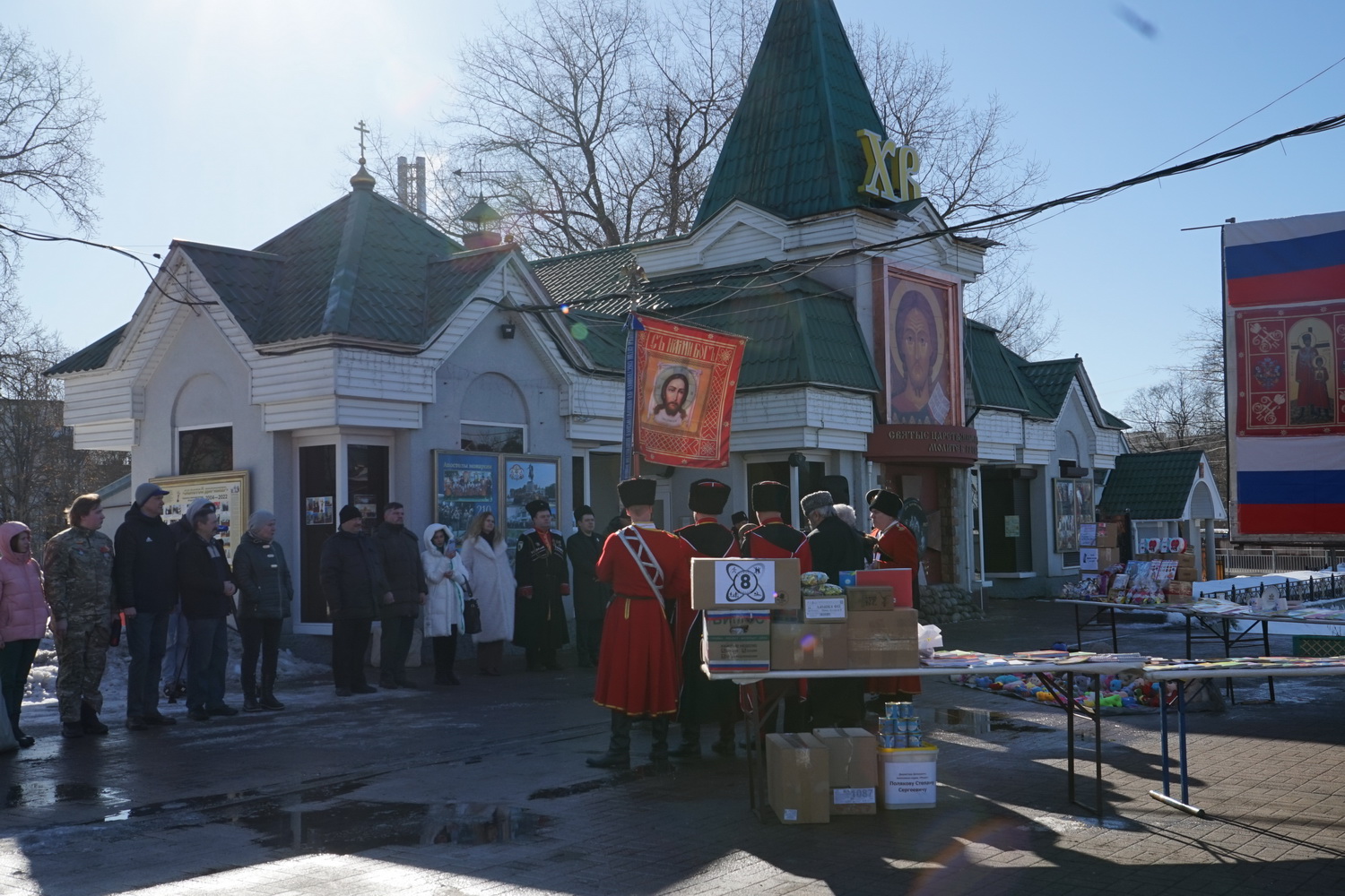 Затем батюшка поблагодарил всех причастных к сбору гуманитарной помощи, а именно казаков «Невской сечи», казаков братских казачьих общин благотворительные фонды и частных лиц.