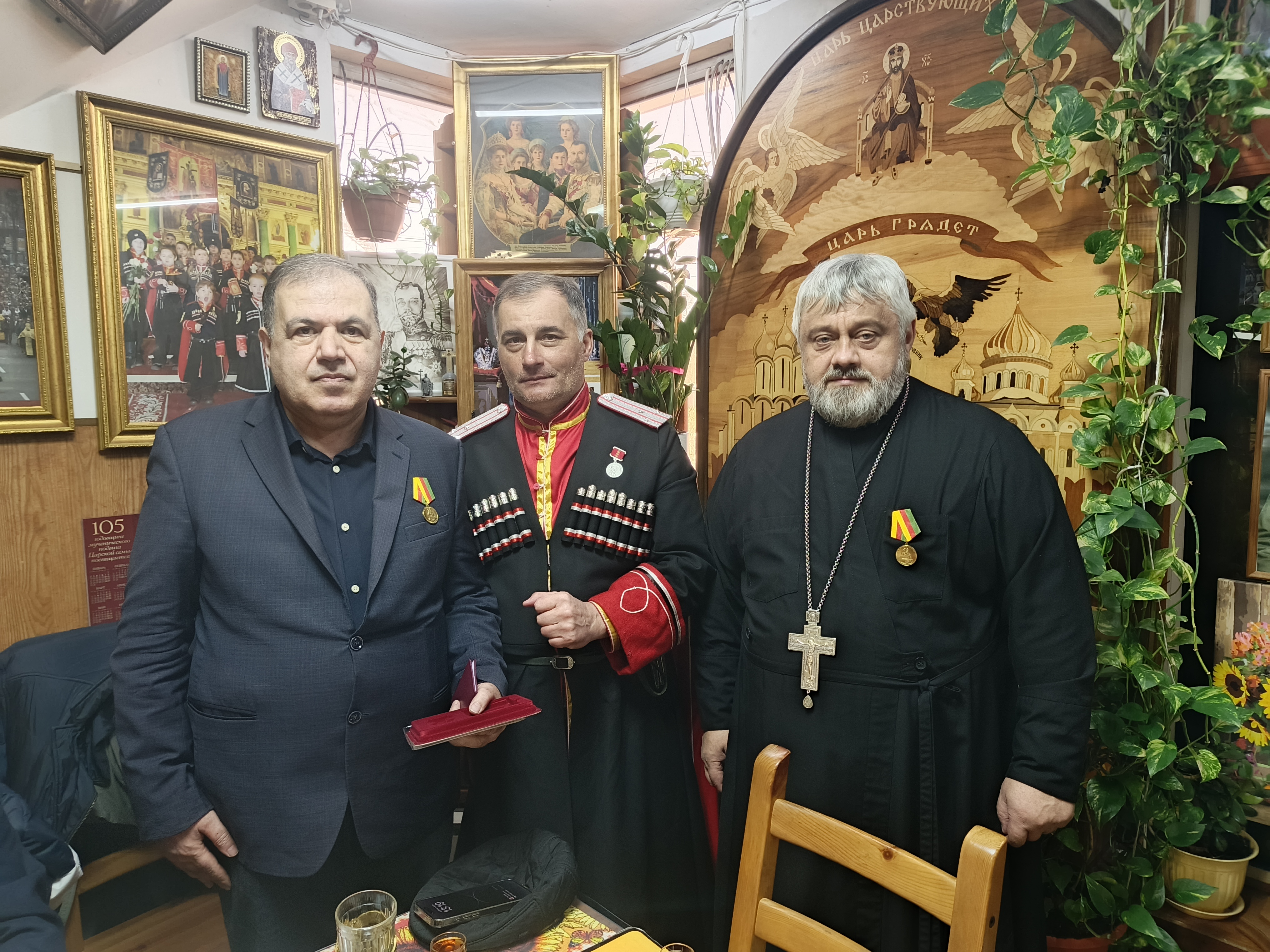 После напутствующих слов, по благословению архимандрита Гавриила (Коневиченко) приступили к награждению медалями – волонтеров, благотворителей, всех тех, кто оказывает помощь в сборе и доставке гуманитарной помощи в зону боевого соприкосновения СВО.