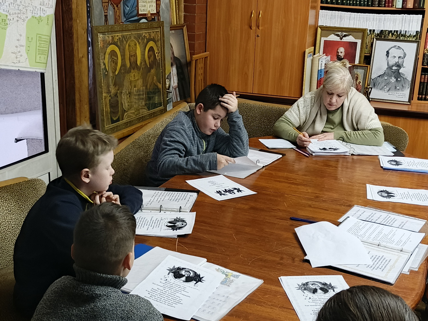 Затем перешли к практической части занятия — начали осваивать чтение начальных молитв на церковно-славянском языке. Несмотря на сложность, ребята активно включались в процесс и проявили удивительную внимательность и усидчивость.