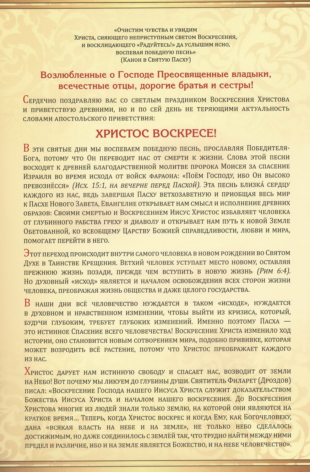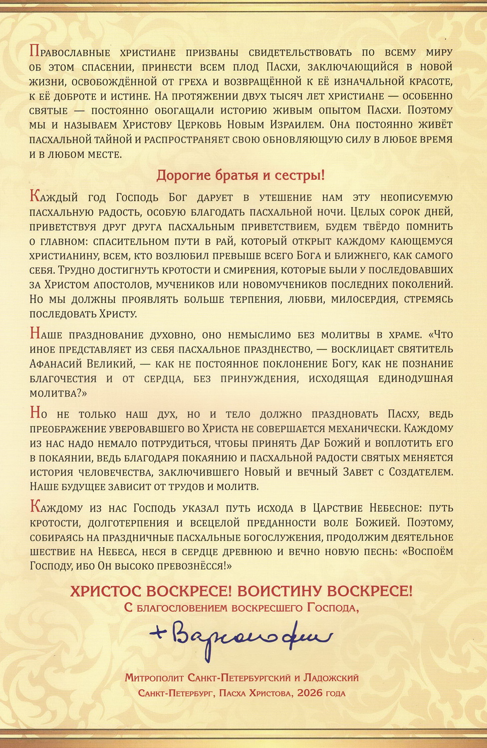 Пасхальное послание Высокопреосвященнейшего Варсонофия, митрополита Cанкт-Петербургского и Ладожского