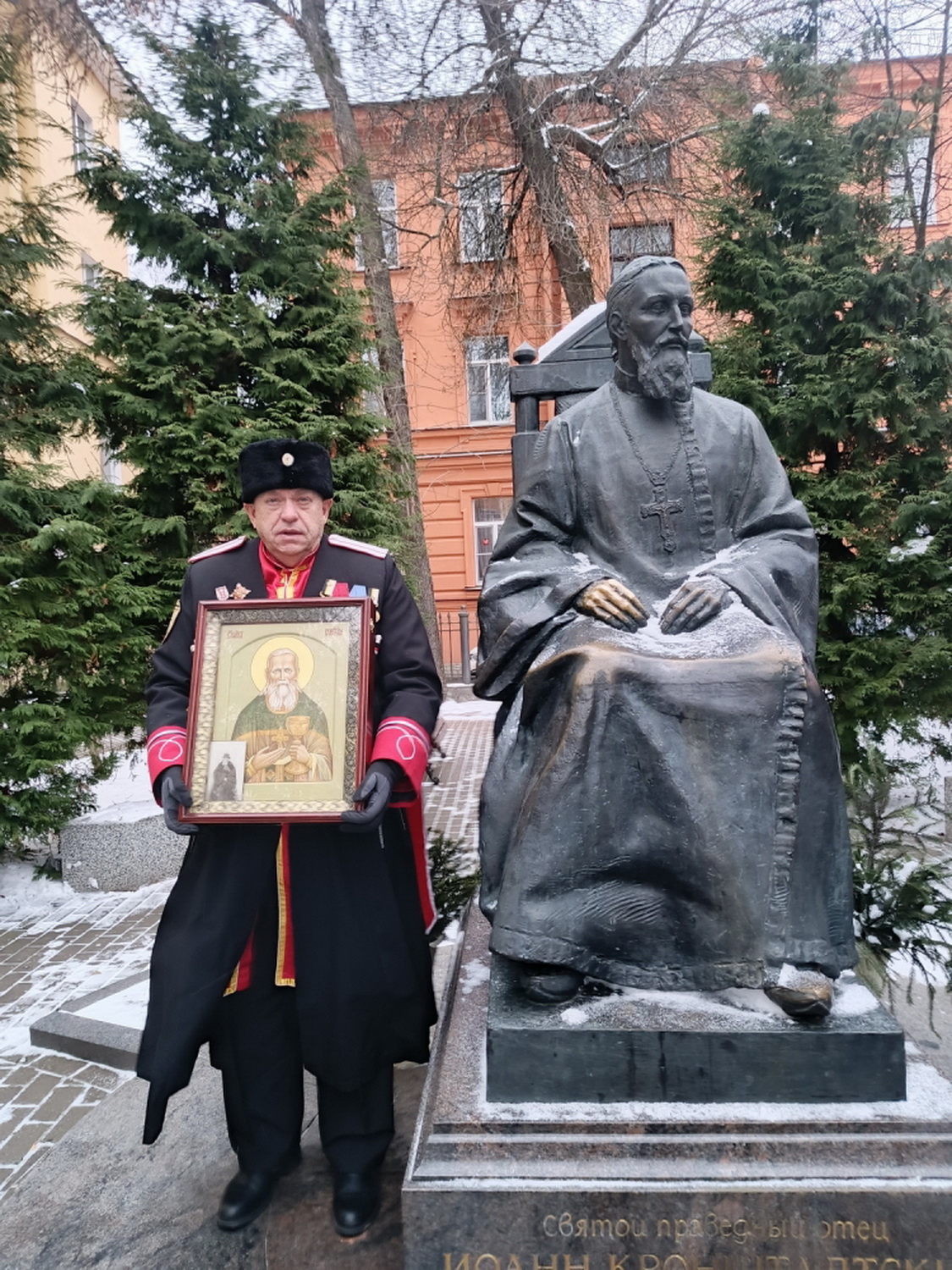 12 апреля 2026 года. Настоятеля храма Тихвинской иконы Божией Матери архимандрита Гавриила (Коневиченко) с Юбилеем – 60-летием поздравил казак «Невской сечи» Владимир Георгиевич Бурла