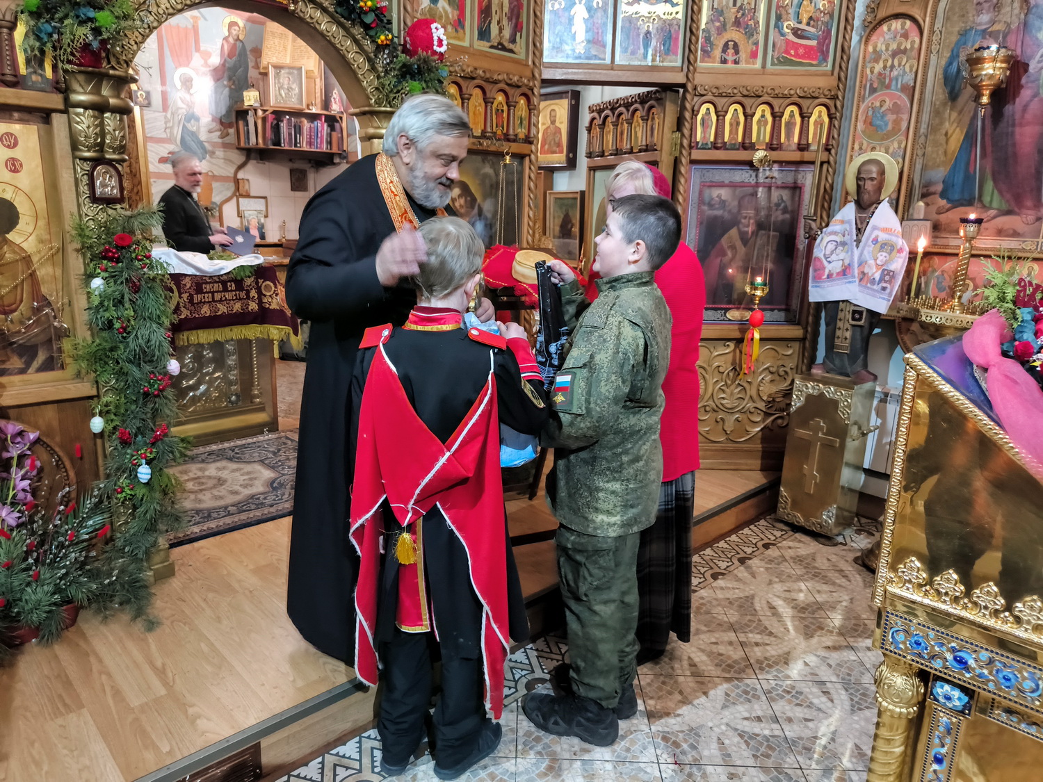 12 апреля 2026 года. Настоятеля храма Тихвинской иконы Божией Матери города Сестрорецка архимандрита Гавриила (Коневиченко) с Юбилеем – 60-летием поздравила семья Лубниных