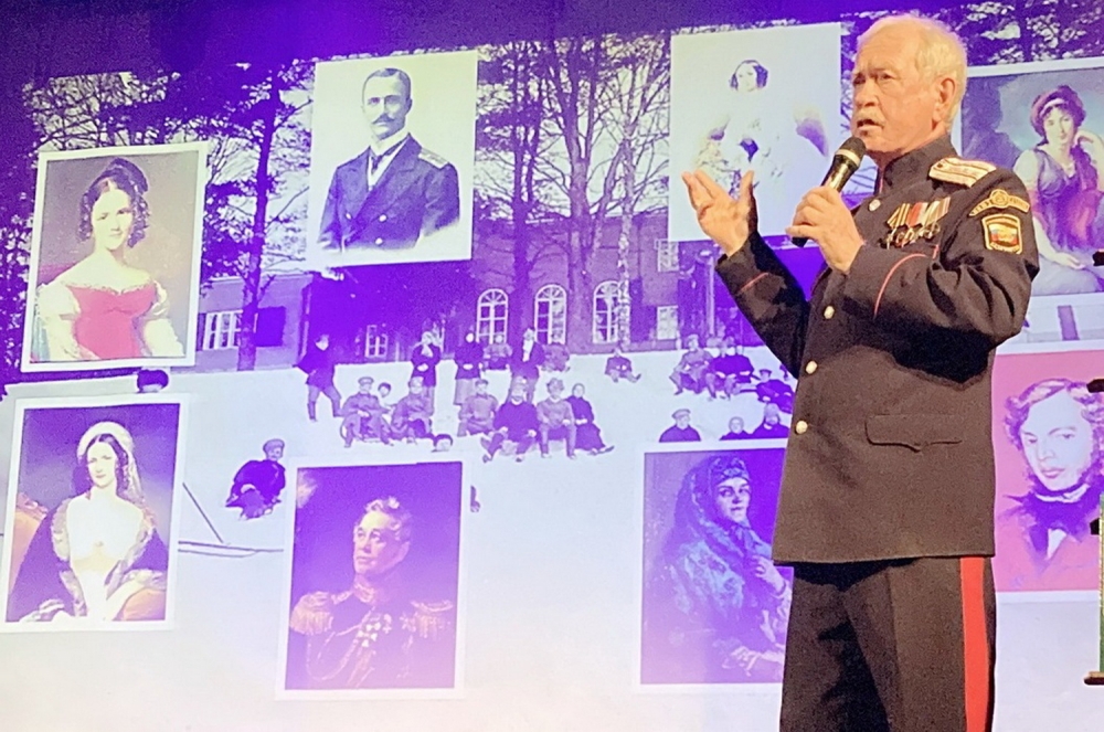 В городском Доме культуры собравшихся жителей города, учеников Верейской средней школы с праздничной датой поздравил Почетный гражданин города Вереи и Наро-Фоминского района, Заслуженный работник культуры Московской области, начальник штаба Годуновского отдела Конвоя Памяти Государя Императора Николая II в Подмосковье и Столичной сотни Ставропольского казачьего войска Союза казаков России, казачий полковник Ю.В. Комаровский. Юрий Владимирович – автор многих книг о Наро-Фоминской земле. На сцене были представлены его книги о Наро-Фоминске.