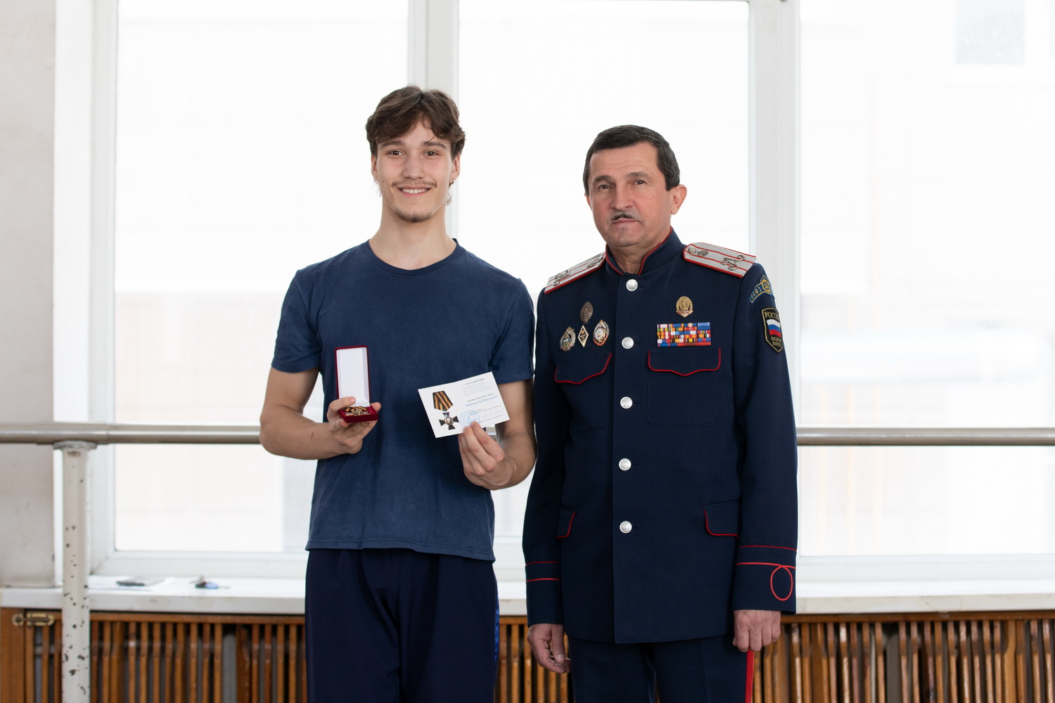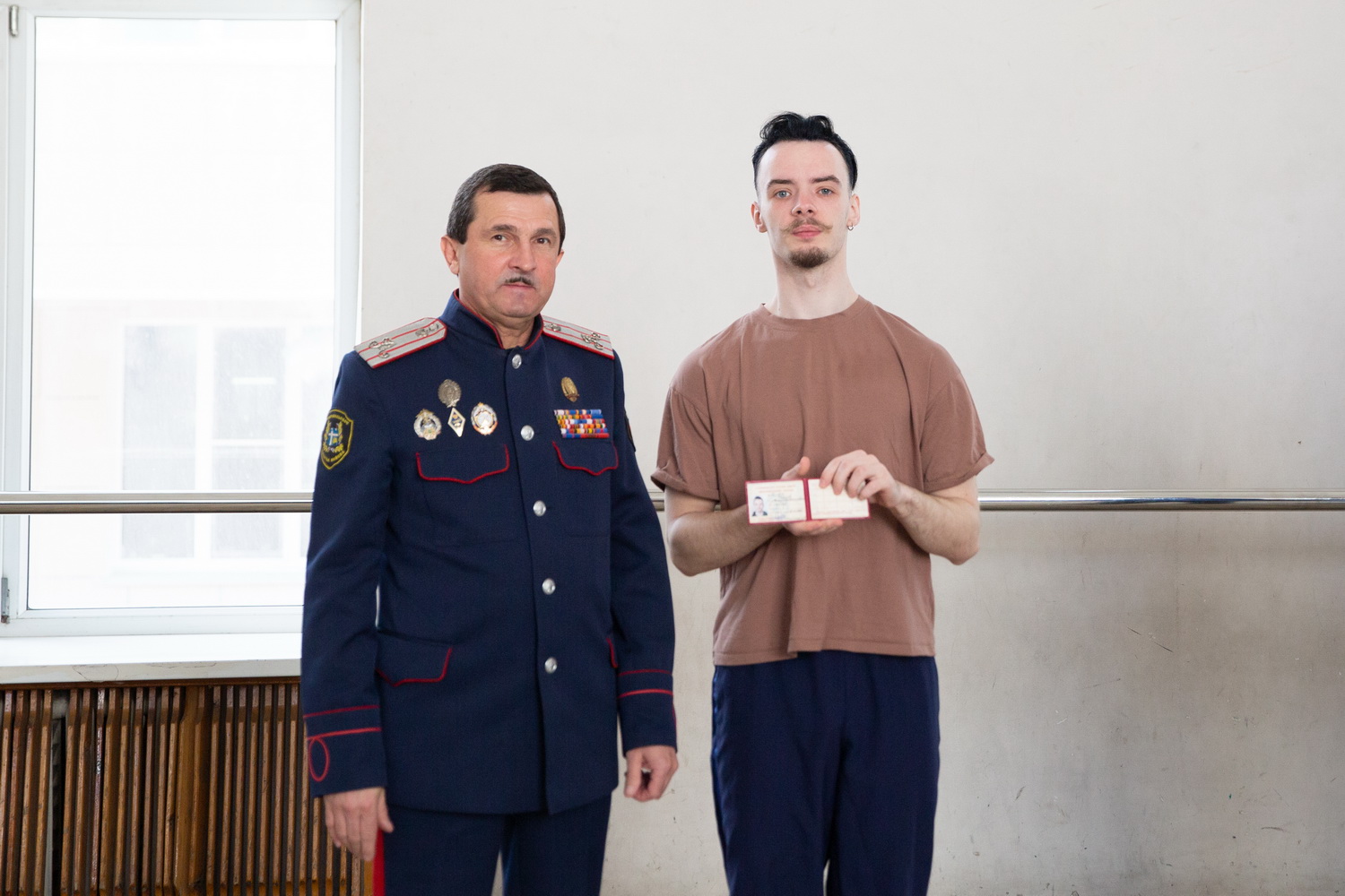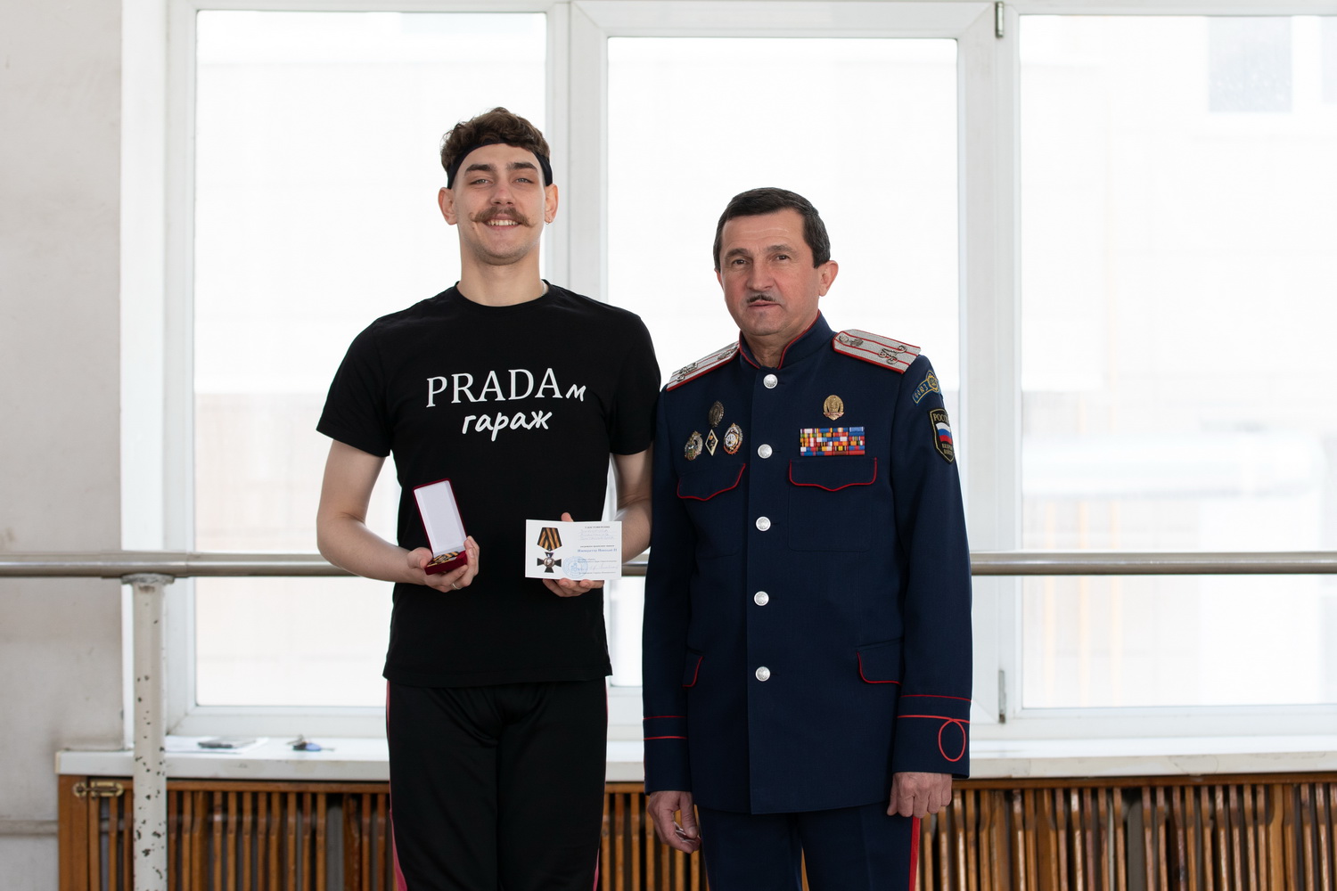 По благословению настоятеля настоятель храма Тихвинской иконы Божией Матери города Сестрорецка, войскового священника Ставропольского казачьего войска, духовника Конвоя Памяти Государя Императора Николая II архимандрита Гавриила (Коневиченко) атаман Ставропольского казачьего войска, наказной атаман Ставропольского отдела Конвоя казачий полковник Дмитрий Владимирович Стригунов вручил административным работникам и молодежному составу Государственного казачьего ансамбля песни и танца «Ставрополье» Ставропольского края орденские знаки «Император Николай II».
