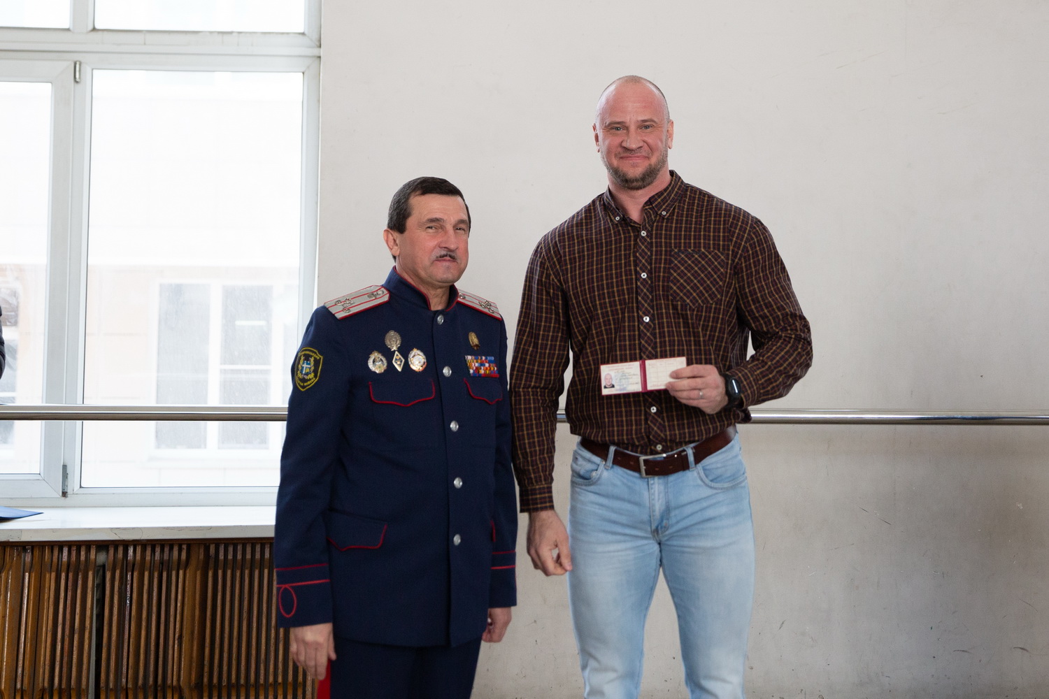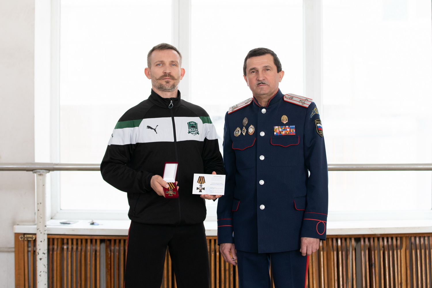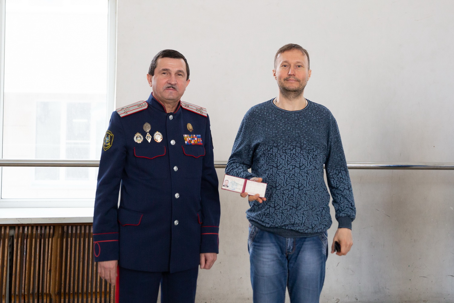 По благословению настоятеля настоятель храма Тихвинской иконы Божией Матери города Сестрорецка, войскового священника Ставропольского казачьего войска, духовника Конвоя Памяти Государя Императора Николая II архимандрита Гавриила (Коневиченко) атаман Ставропольского казачьего войска, наказной атаман Ставропольского отдела Конвоя казачий полковник Дмитрий Владимирович Стригунов вручил административным работникам и молодежному составу Государственного казачьего ансамбля песни и танца «Ставрополье» Ставропольского края орденские знаки «Император Николай II».