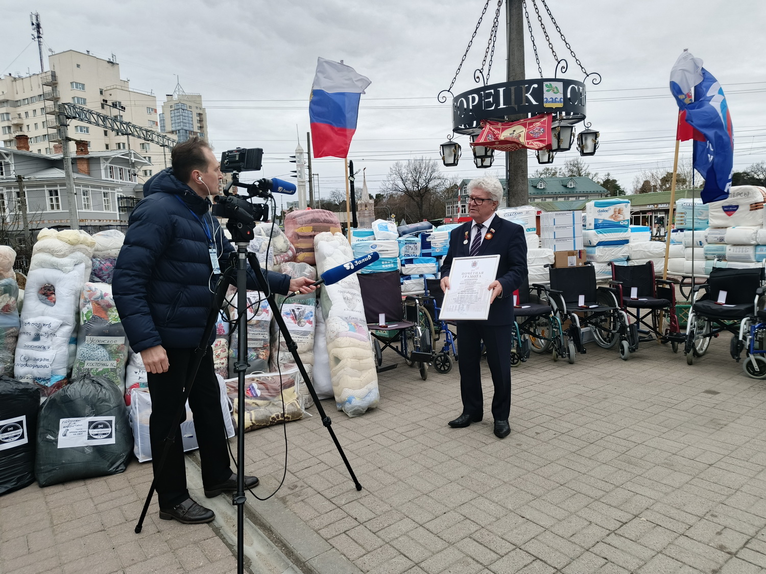 В состав, этого 38-го, гуманитарного конвоя вошла в основном медицина. Были отправлены инвалидные коляски, подгузники и пеленки для взрослых, ортопедические и противопролежневые подушки и матрасы, валики медицинские послеоперационные, трубки эндотрахеальные одноразовые, носилки, бинты, салфетки, комплекты постельного и нательного белья, также для отличившихся бойцов переданы орденские знаки «Император Николай II».
