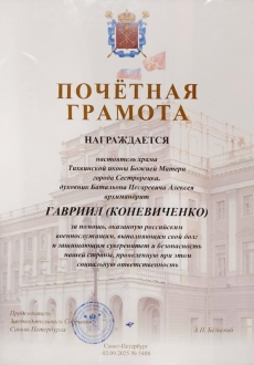 11 ноября, по благословению духовника Батальона Цесаревича Алексия, настоятеля храма Тихвинской иконы Божией Матери города Сестрорецка архимандрита Гавриила (Коневиченко) очередной гуманитарный груз был отправлен в зону СВО для батальона Цесаревича Алексия.