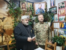 12 апреля 2026 года. Настоятеля храма Тихвинской иконы Божией Матери архимандрита Гавриила (Коневиченко) с Юбилеем – 60-летием поздравил казак «Невской сечи» Владимир Георгиевич Бурла