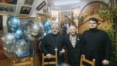 12 апреля 2026 года. Настоятеля храма Тихвинской иконы Божией Матери архимандрита Гавриила (Коневиченко) с Юбилеем – 60-летием поздравил директор Бильярдного клуба «XXXL» Николай Владимирович Мараев