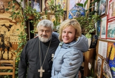 12 апреля 2026 года. Настоятеля храма Тихвинской иконы Божией Матери архимандрита Гавриила (Коневиченко) с Юбилеем – 60-летием поздравила семья Кудиновых – Ирина Владимировна и Виктор Иванович