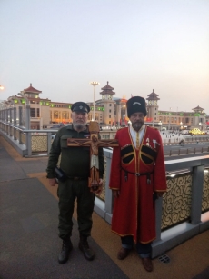 В Крестном ходе с Годеновским Животворящем Крестом «Святая Русь» принимают участие казаки Отдела Конвоя Памяти Царя Мученика Николая II при Войсковой Православной Миссии, участники международного автомобильного крестного хода «Святая Русь» Кухарь Василий Владимирович и Даниленко Виталий Иванович.