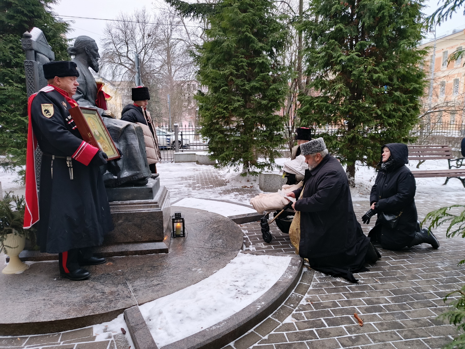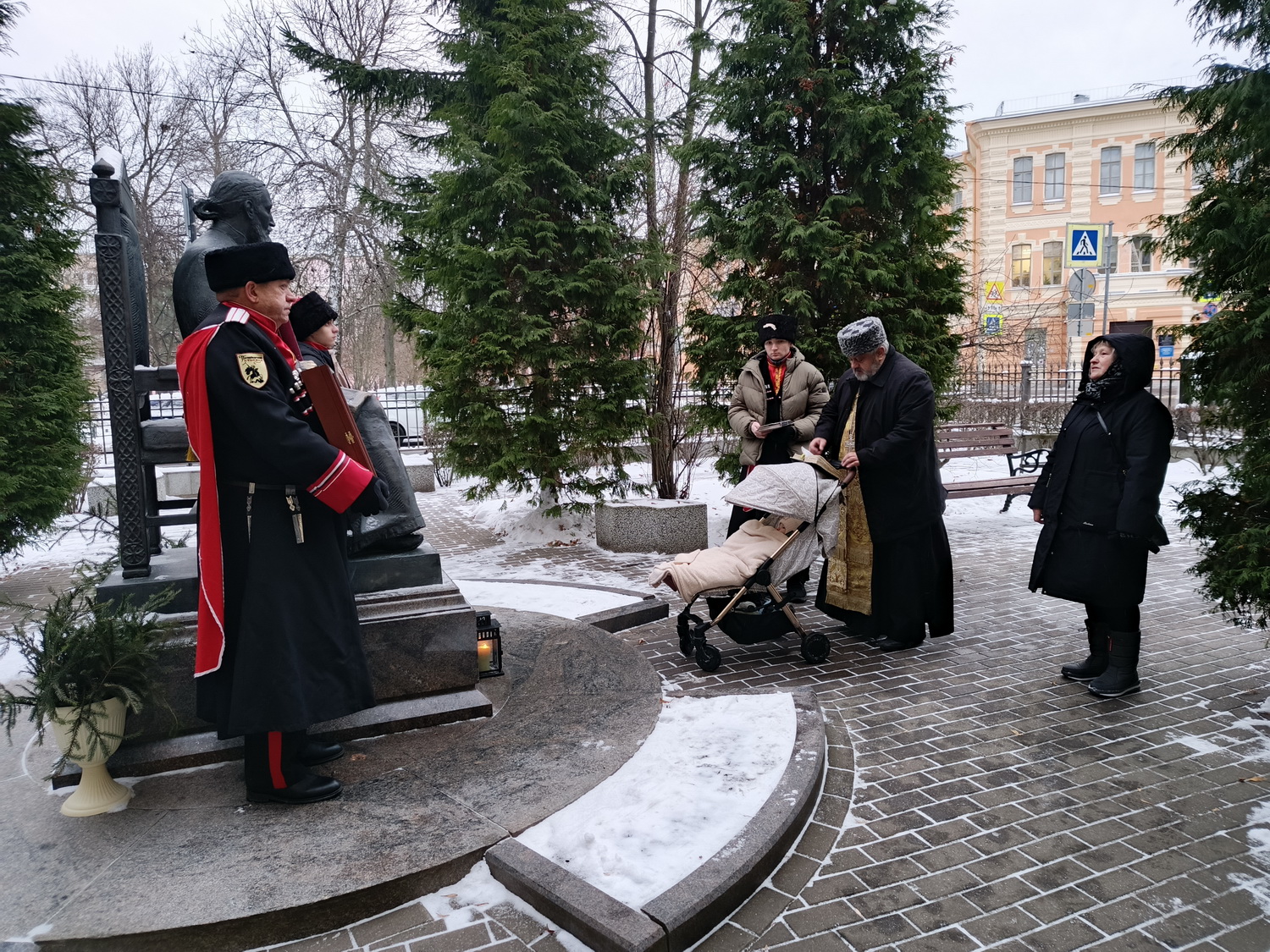 Архимандрит Гавриил (Коневиченко) отслужил молебен в мемориальном скверике у Дома-Музея св. Иоанна Кронштадтского у памятника святому.