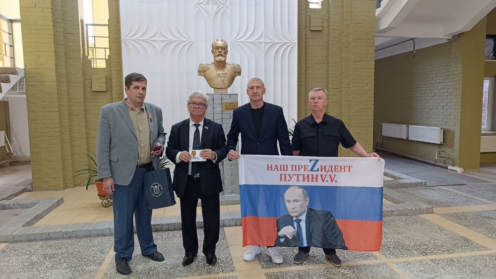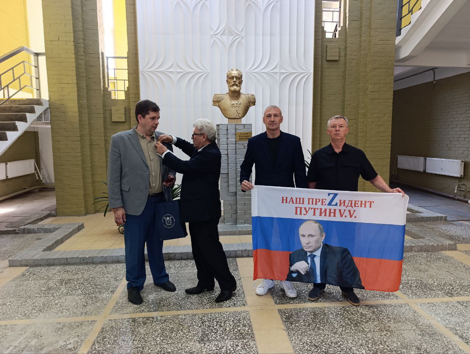 По благословению духовника казачьей общины Конвой Памяти Государя Императора Николая II, настоятеля храма Тихвинской иконы Божией Матери города Сестрорецка архимандрита Гавриила (Коневиченко) полномочный представитель Председателя Законодательного Собрания Санкт-Петербурга по связям с органами государственной власти Александр Александрович Ваймер вручил медаль «Русь святая! Храни веру православную» директору сестрорецкого технологического колледжа имени С.И. Мосина Денису Валерьевичу Бухарову.