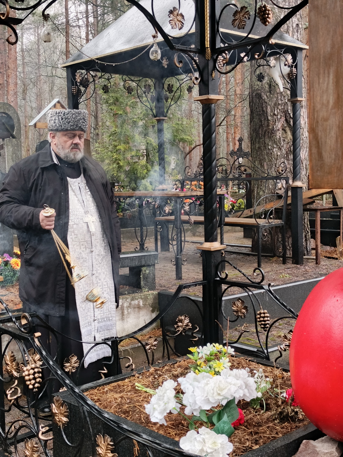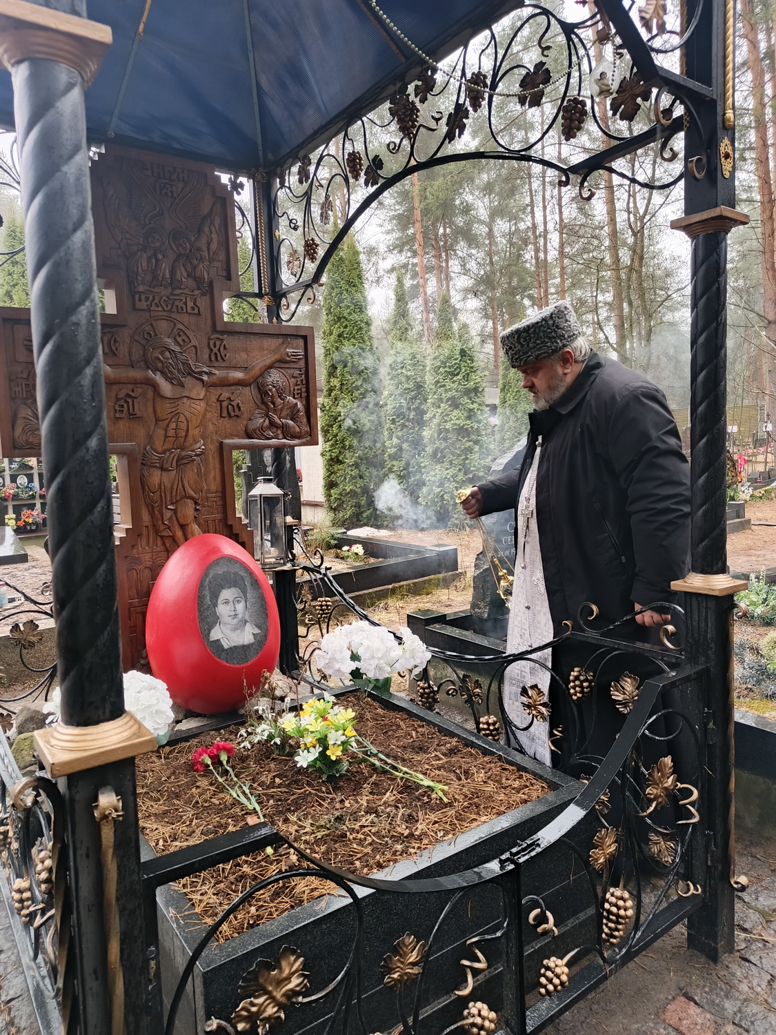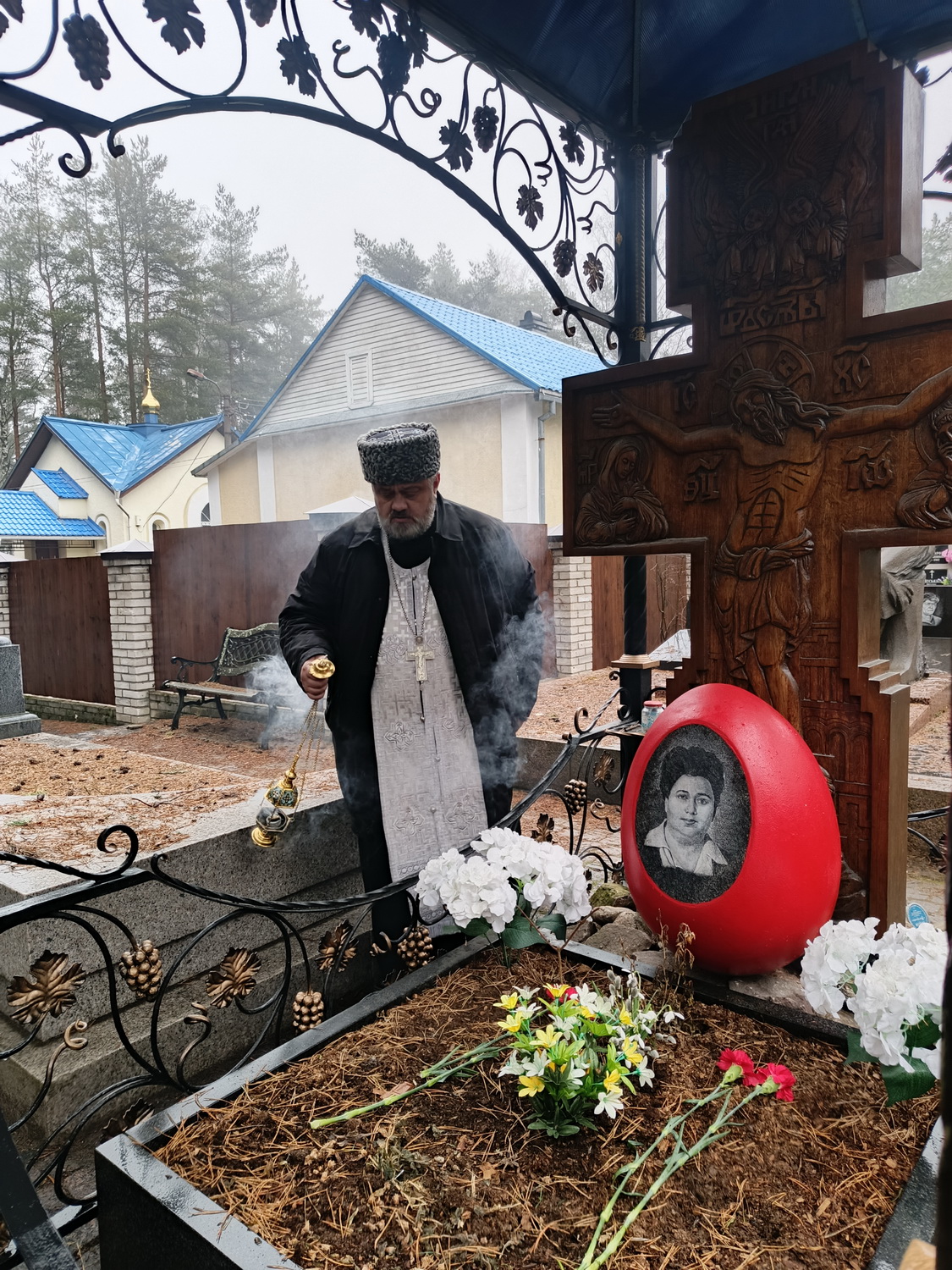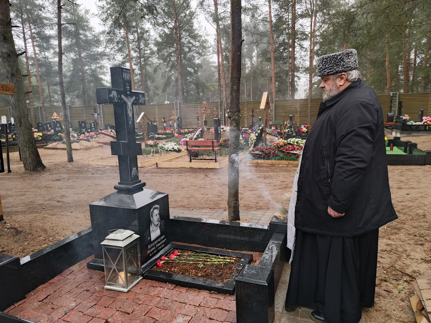 4 апреля 2026 года на Сестрорецком кладбище настоятель храма Тихвинской иконы Божией Матери города Сестрорецка архимандрит Гавриил (Коневиченко) отслужил заупокойную литию по приснопамятной православной вышивальщице Коневиченко Марии Константиновне.