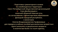 Видеоролик «Подготовка гуманитарного конвоя для передачи учебных пособий для школьников и дошкольников Донецкой Народной Республики»