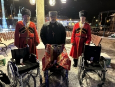 Настоятель храма Тихвинской иконы Божией Матери города Сестрорецка, духовник Батальона Цесаревича Алексия архимандрит Гавриил (Коневиченко) и казаки общины «Невская сечь» передали инвалидные коляски для бойцов СВО, проходящих лечение в медучреждениях Санкт-Петербурга.