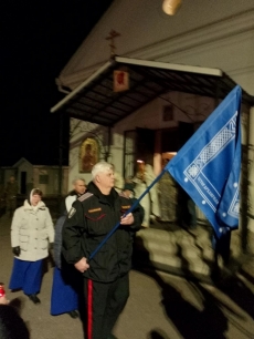 Обнос Плащаницы вокруг храма Тихвинской иконы Божией Матери Сестрорецка по уже сложившейся традиции совершили казаки «Невской Сечи» со своим духовником архимандритом Гавриилом (Коневиченко).
