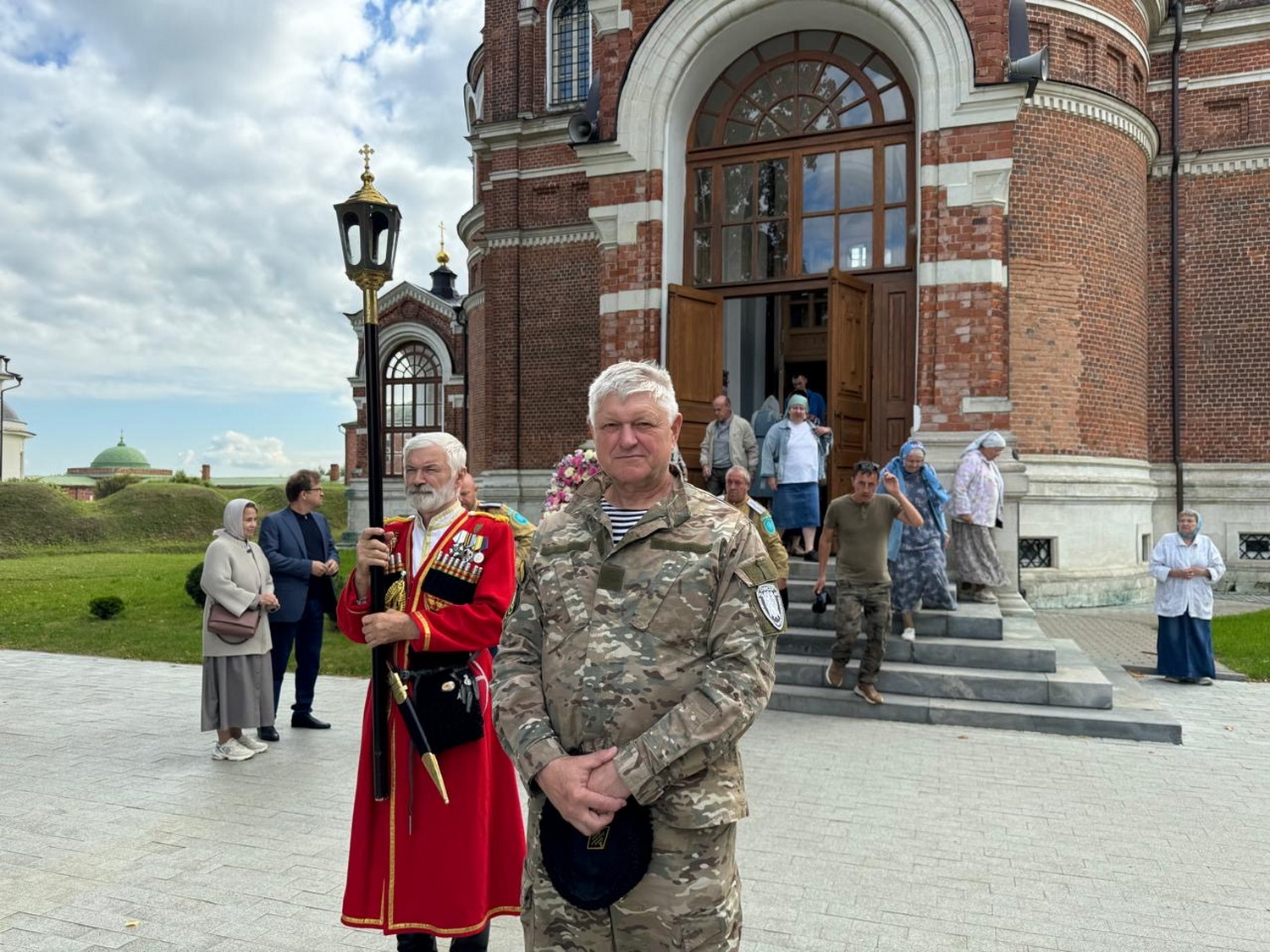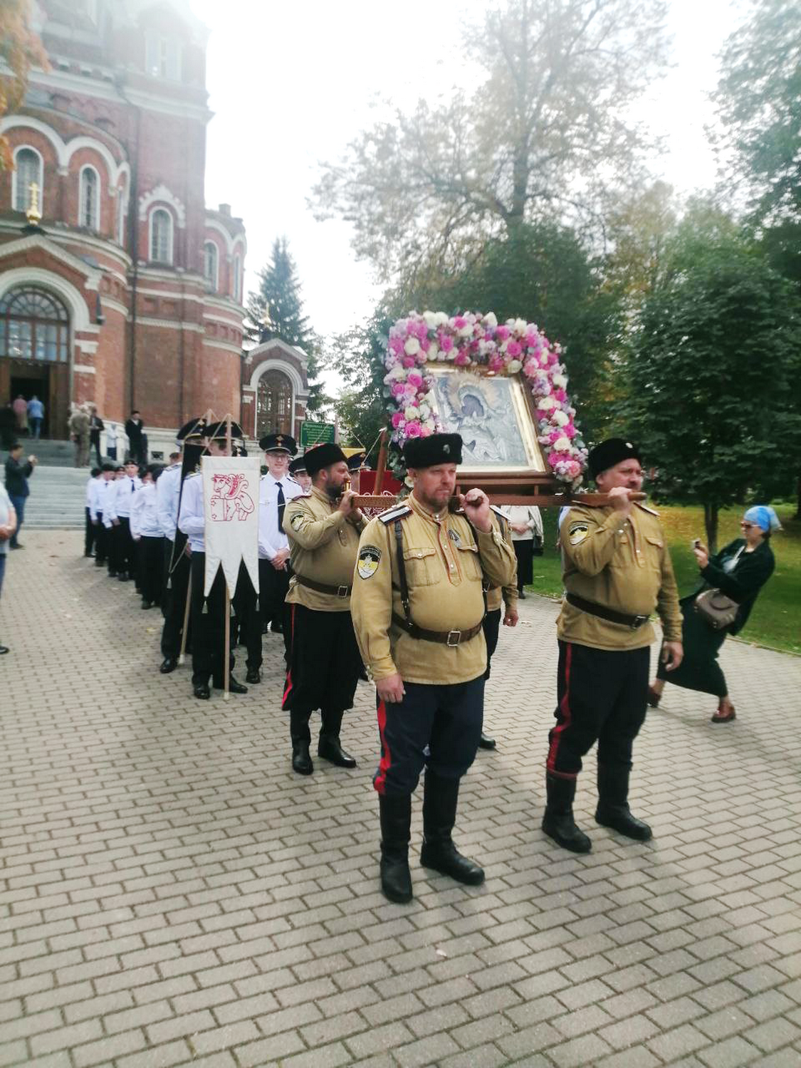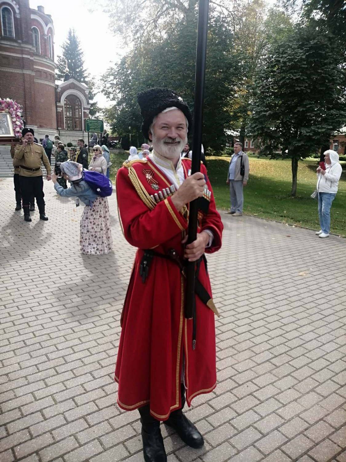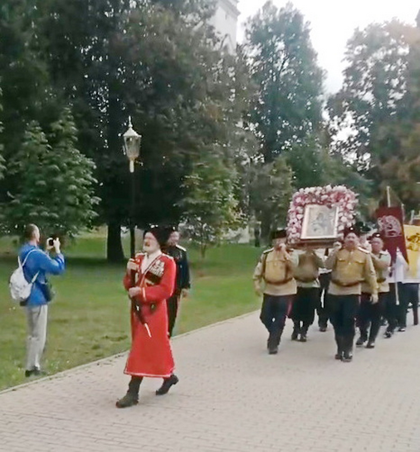 Примечательно, что впереди Крестного хода в этом торжественном шествии с фонарем шел войсковой старшина Конвоя Памяти Государя Императора Николая II в Подмосковье Валерий Сергеевич Семёнов в конвойской справе.