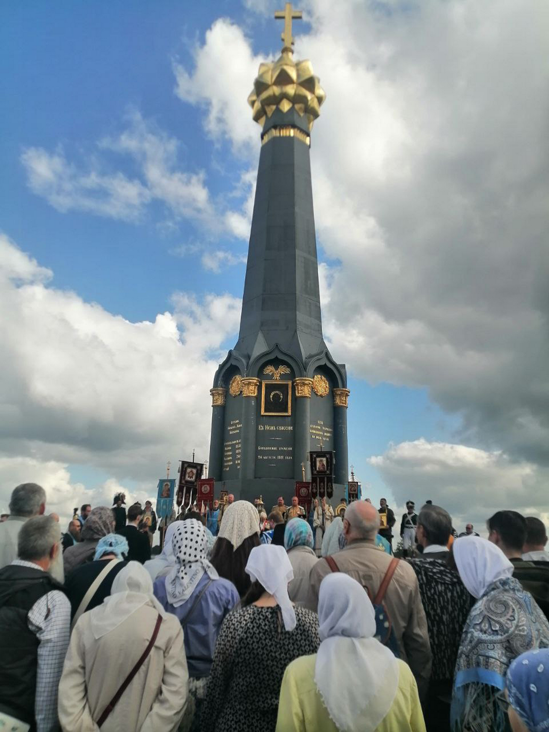Впервые крестный ход и молебен с участием Императора Николая I на Бородинском поле состоялись в 1839 году. В донесении Святейшему Синоду от 29 августа 1839 года. митрополит Филарет так писал об этом событии: «По Высочайшей воле Его Императорского Величества в 26-й день сего месяца (августа) совершилось назидательное и величественное торжество открытия и освящения памятника на Бородинском поле». В этот же день 26 августа (8 сентября) 1839 года возле памятника Раевского отслужили молебен, составленный святителем Филаретом в 1814 году.