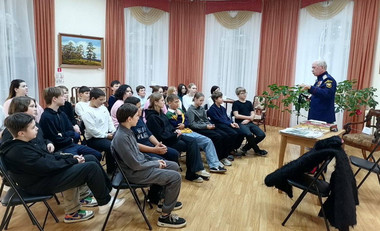 19 сентября в Верейском историко-краеведческом музее начальник штаба Годуновского отдела Конвоя Памяти Государя Императора Николая II в Подмосковье и Столичной сотни Ставропольского казачьего войска, Заслуженный работник культуры Московской области Ю.В. Комаровский встретился с учениками Верейской средней школы