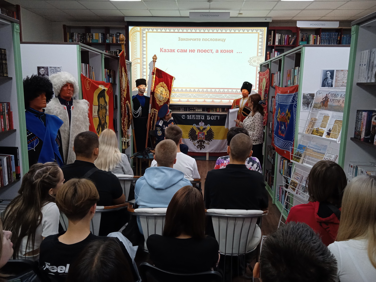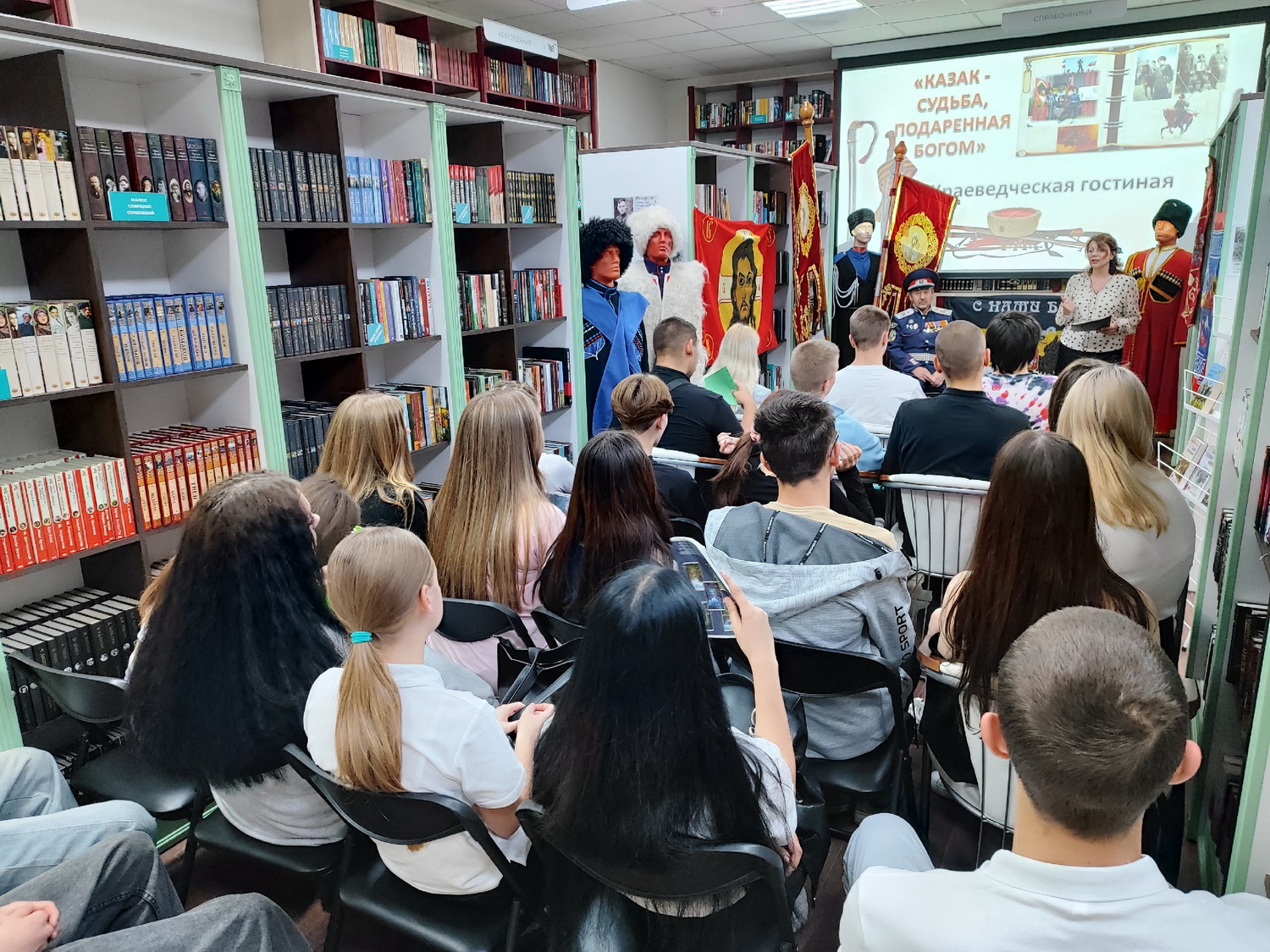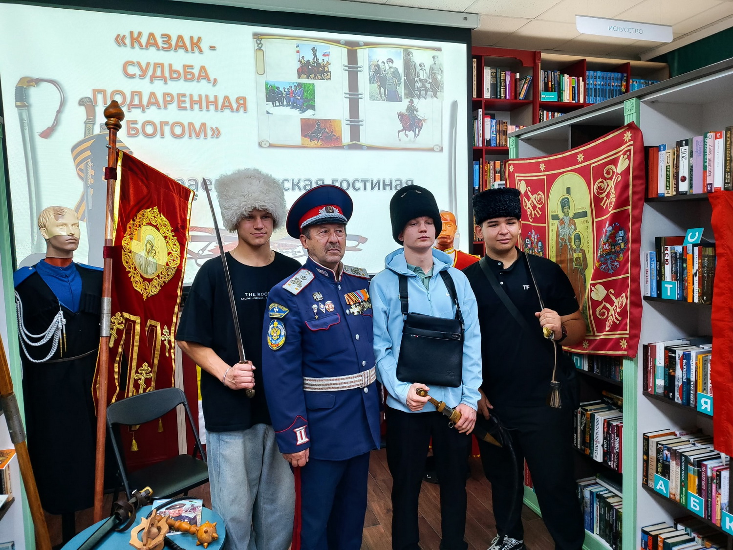 25 сентября библиотека пригласила студентов педагогического колледжа на краеведческую гостиную – «Казак — судьба, подаренная Богом», посвящённую истории, традициям и обычаям российского казачества.