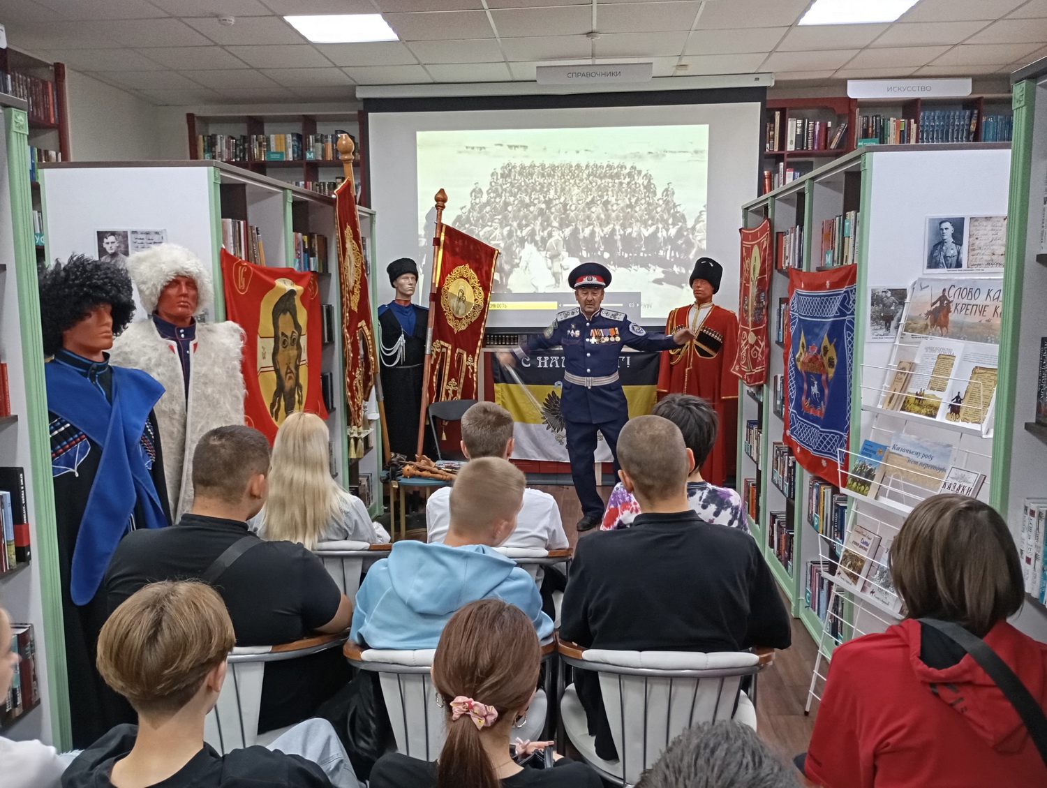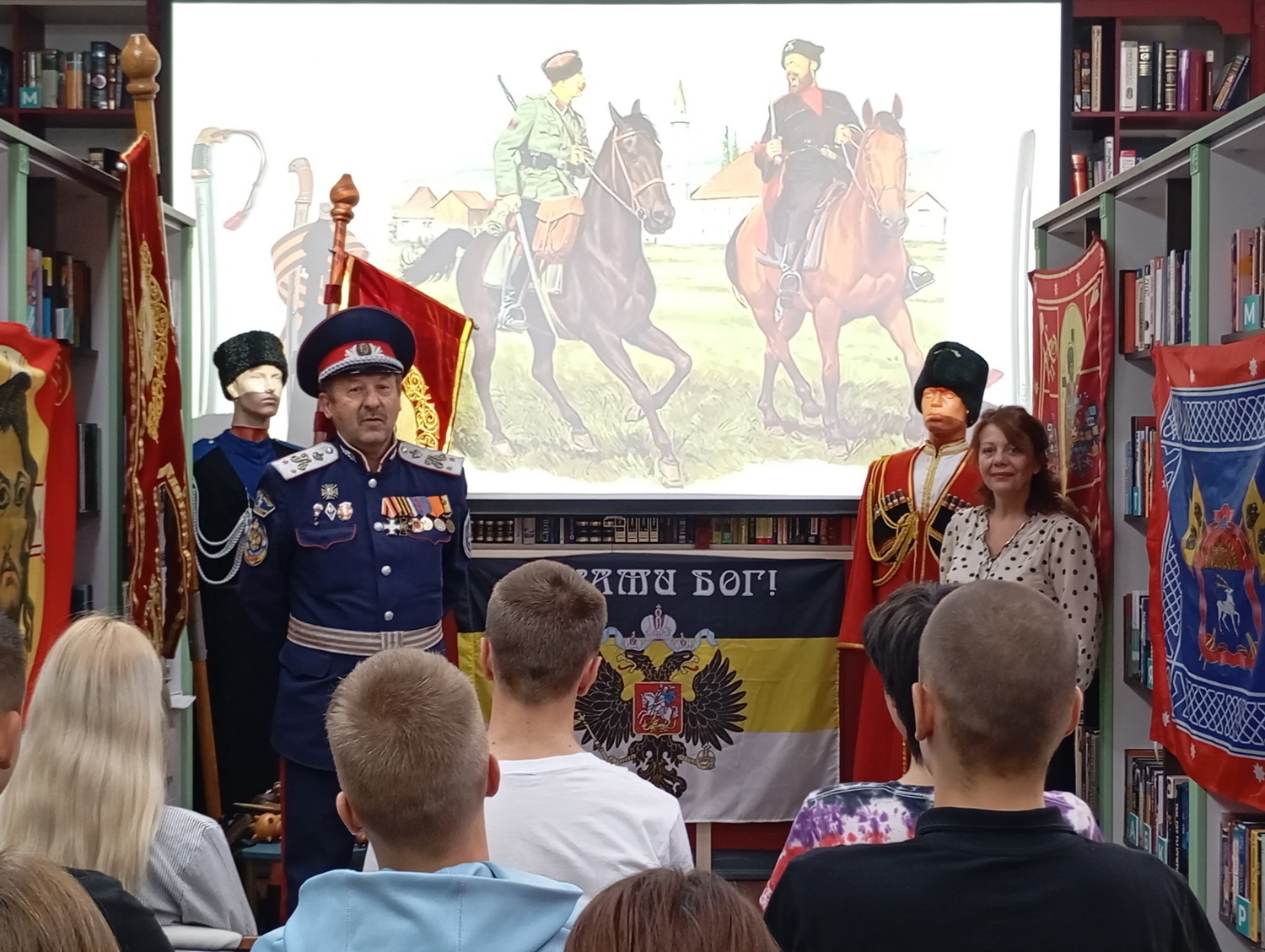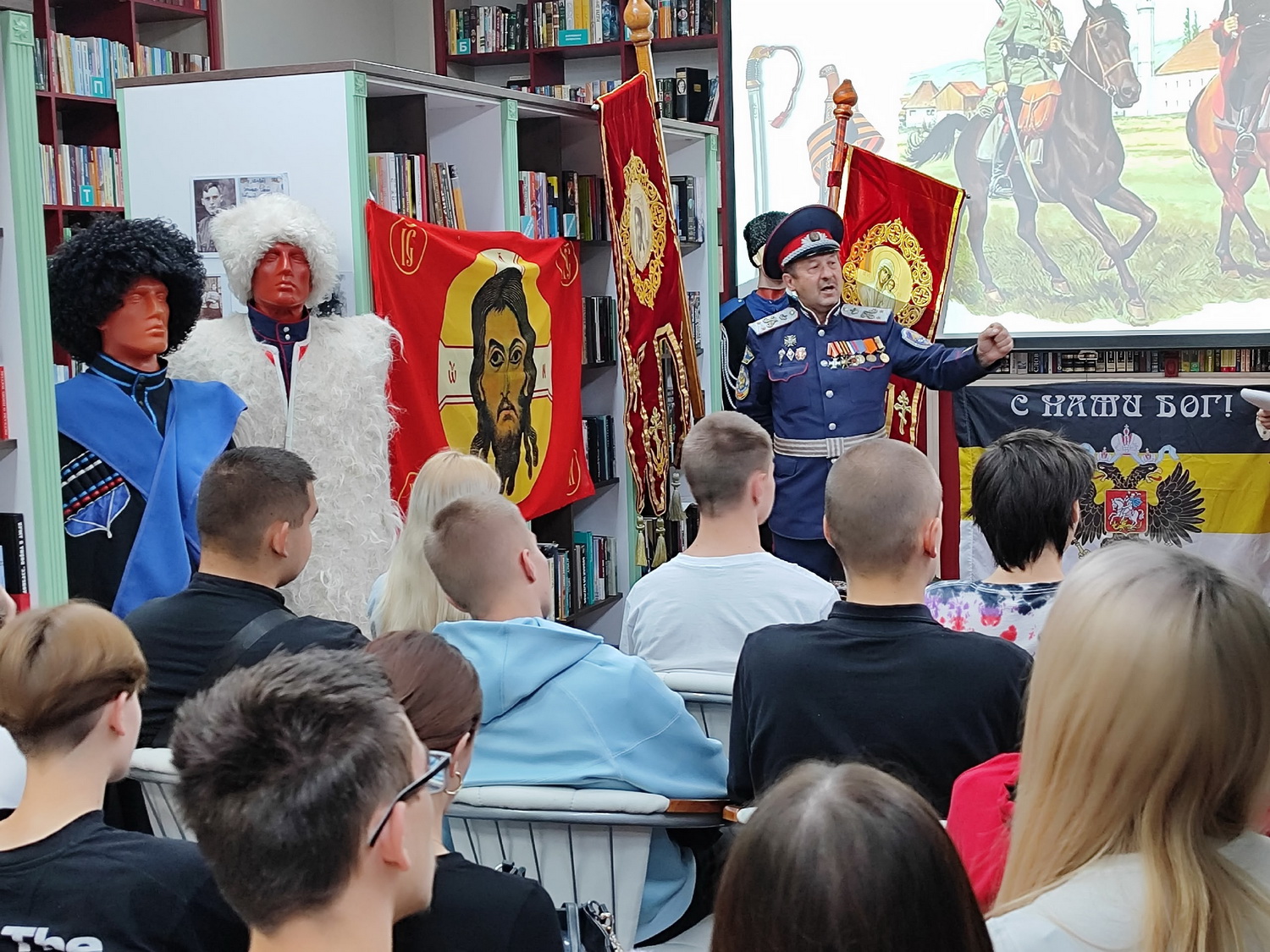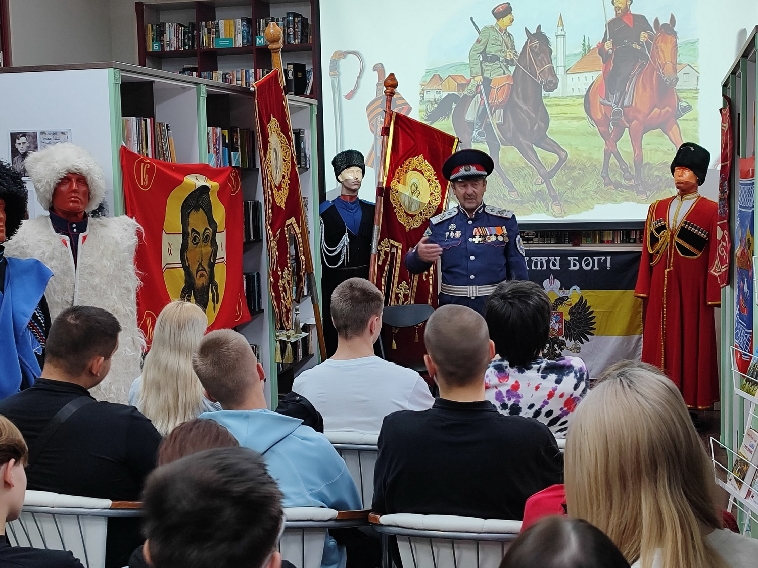 25 сентября библиотека пригласила студентов педагогического колледжа на краеведческую гостиную – «Казак — судьба, подаренная Богом», посвящённую истории, традициям и обычаям российского казачества.