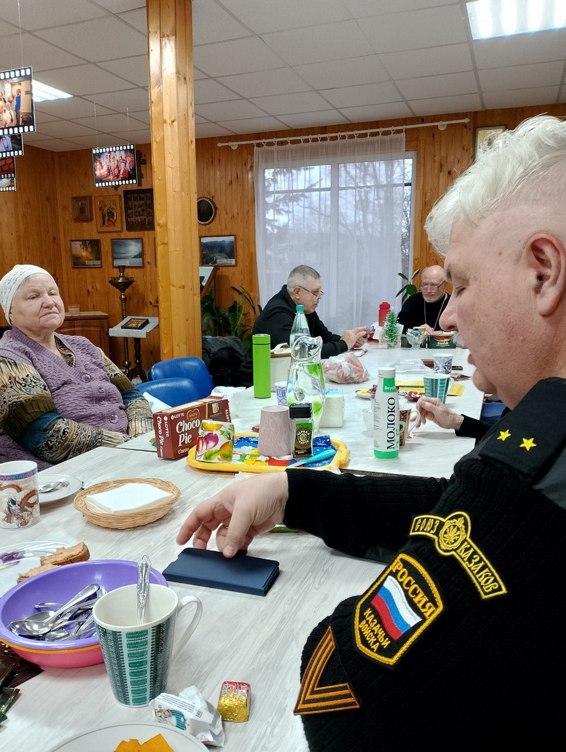 После литургии состоялась встреча атамана Дмитрия Федорова с прихожанами. На встрече была рассказана краткая история казачества на Волховской земле от Ладожских ушкуйников до наших дней.