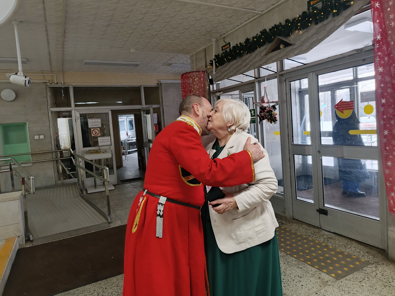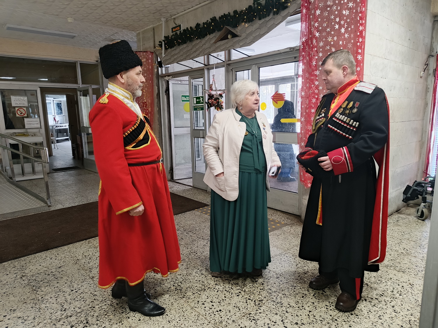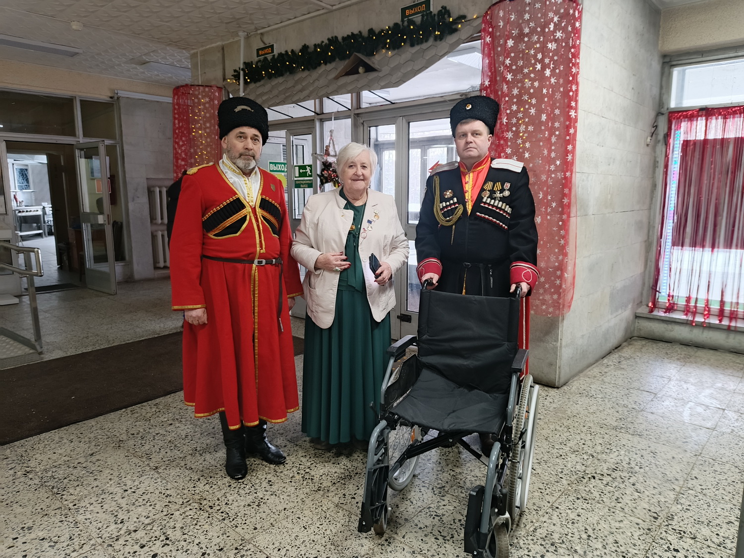 В пансионате «Заря» казаки передали коляску члену Совета Общественного движения «Вечно живые» и «Бессмертный Ленинград», жителю блокадного Ленинграда Зимневой Ирине Алексеевне.