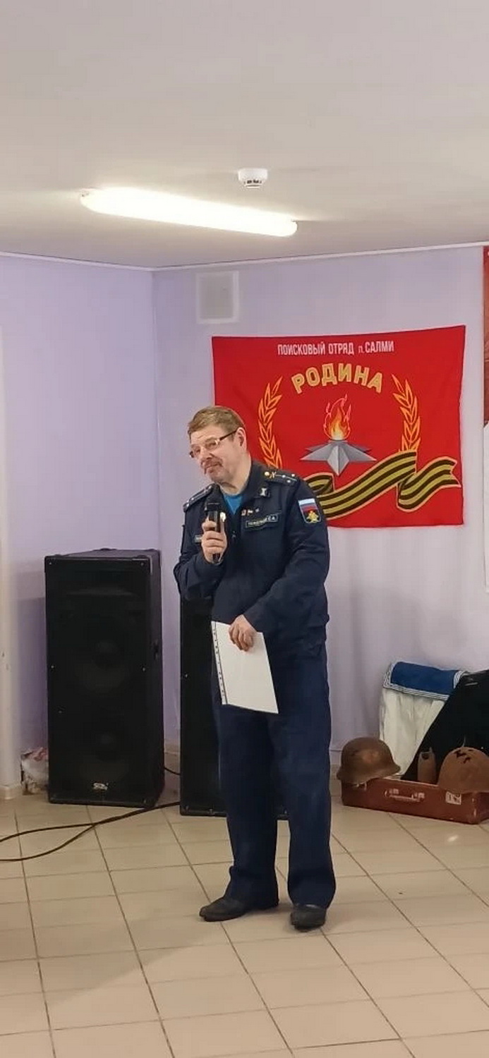 Во время небольшого антракта, командир поискового отряда «Боевое братство», педагог дополнительного образования ППКУ, наказной атаман Петрозаводского отдела Конвоя Памяти Государя Императора Николая II C.А. Тяжелков наградил Благодарственными письмами Карельского республиканского отделения Всероссийской общественной организации ветеранов «Боевое братство» бойцов отряда «Родина» (п. Салми) за помощь в организации и личное присутствие на первой кадетской Вахте памяти «Фронтовыми дорогами Карелии» проходящей в июне 2025 года.