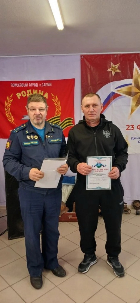 Во время небольшого антракта, командир поискового отряда «Боевое братство», педагог дополнительного образования ППКУ, наказной атаман Петрозаводского отдела Конвоя Памяти Государя Императора Николая II C.А. Тяжелков наградил Благодарственными письмами Карельского республиканского отделения Всероссийской общественной организации ветеранов «Боевое братство» бойцов отряда «Родина» (п. Салми) за помощь в организации и личное присутствие на первой кадетской Вахте памяти «Фронтовыми дорогами Карелии» проходящей в июне 2025 года.