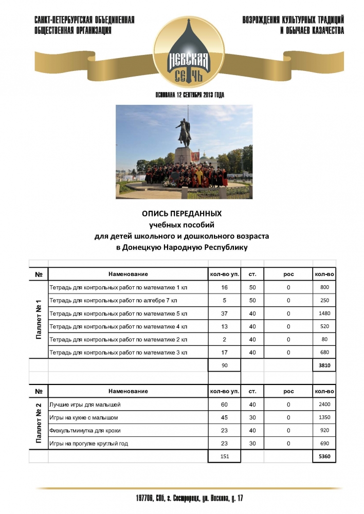 6 марта 2026 года. Опись переданных учебных пособий для детей разных возрастных групп, школьного и дошкольного возраста на освобожденные территории в Донецкую Народную Республику