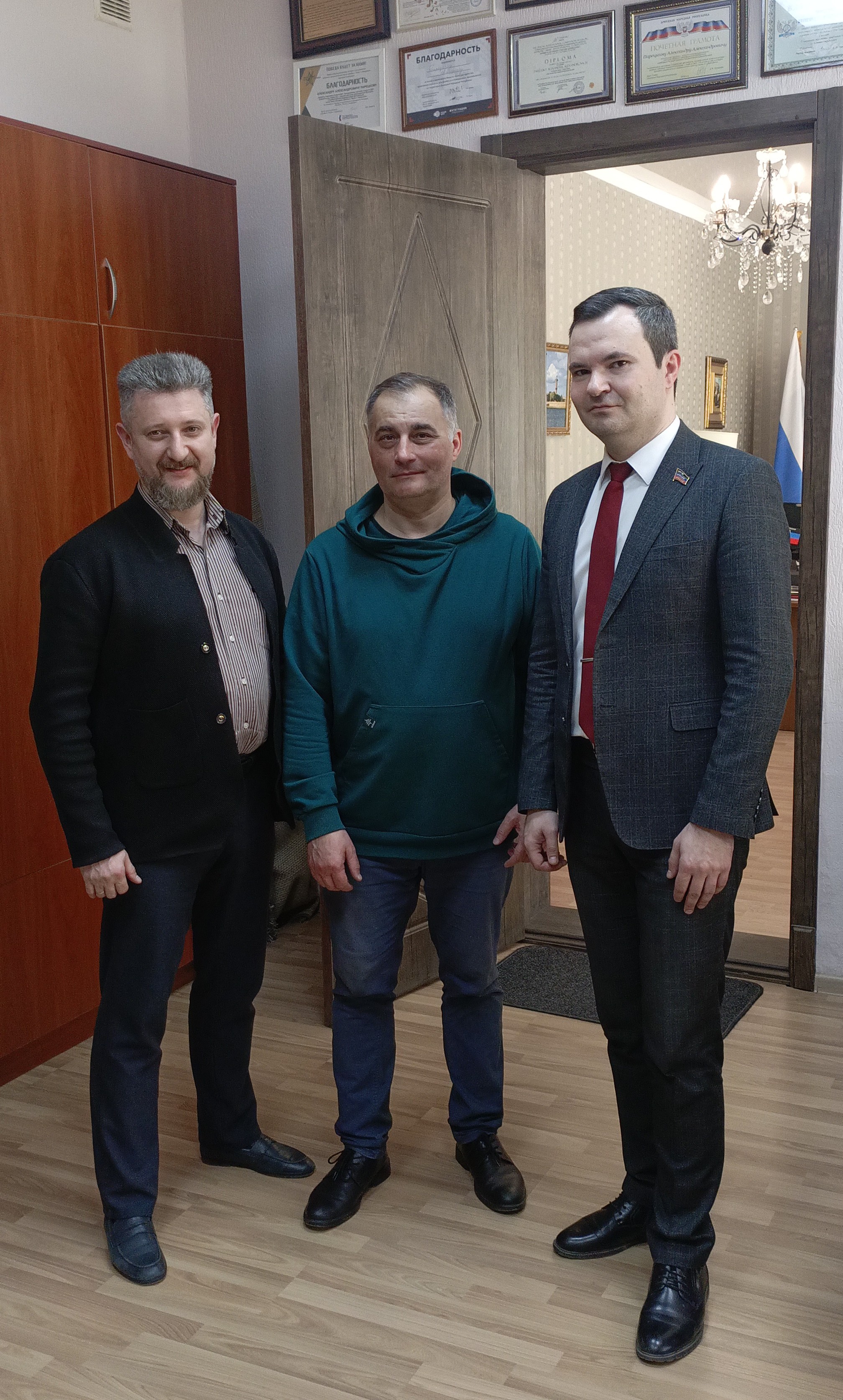 В третий, завершающий день, 13 марта, нас пригласили в Дом профсоюзов ДНР, где состоялось мероприятие, посвященное Дню жилищно-коммунального хозяйства и, на котором награждали сотрудников предприятия «Вода Донбасса». Это одна из стратегических отраслей ДНР, которую можно приравнять к фронту и военным действиям. Так и есть. Сотрудники предприятия делают всё, чтобы вода в Донбассе поступала во все города, хотя бы по чуть-чуть, но поступала. ВСУ обстреливает ремонтные бригады, гибнут сотрудники предприятия. С минуты молчания в память о погибших началось мероприятие. На сегодняшний день сохраняется проблема с водой. Нужно освобождать Славянск и восстанавливать работу водного канала «Северский Донецк – Донбасс», который перекрыли и взорвали бандеровраги.