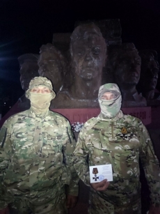 По благословению духовника Батальона Цесаревича Алексия, настоятеля храма Тихвинской иконы Божией Матери города Сестрорецка архимандрита Гавриила (Коневиченко) участник боевых действий в Луганской Народной Республике, боец спецназа награжден орденским знаком «Император Николай II «.
