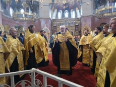 Владыка Вениамин совершил Божественную литургию в сослужении старшего священника обители иерея Дионисия Харина, клириков Новодевичьего монастыря и Александро-Невской лавры.