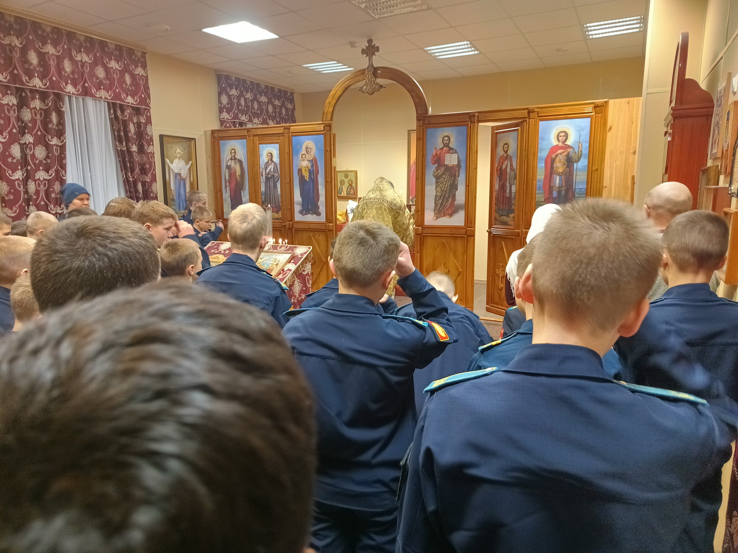 30 ноября 2024 года казачатами Конвоя Памяти Цесаревича Алексия молились на литургии в Домашнем храме Петрозаводского Президентского кадетского училища