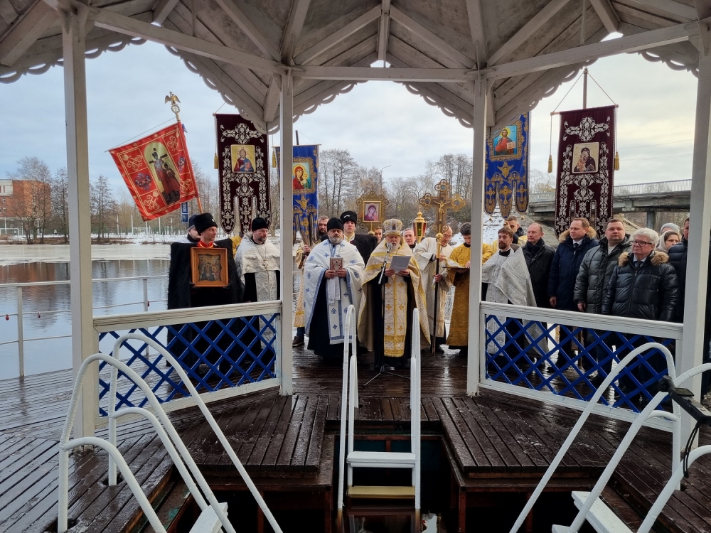 После Божественной литургии молящиеся вышли к емкости с водой к зданию Духовно-просветительского центра, где настоятель храма Тихвинской иконы Божией Матери Сестрорецка архимандрит Гавриил (Коневиченко) совершил Великое Водосвятие. Батюшка окропил всех святой водой и поздравил с праздником Крещения Господня, Богоявлением.