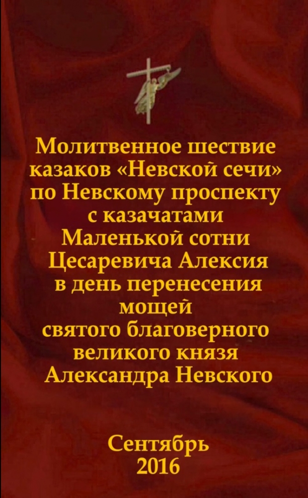 Молитвенное шествие казаков «Невской сечи» по Невскому проспекту с казачатами Маленькой сотни Цесаревича Алексия в день перенесения мощей святого благоверного великого князя Александра Невского. Сентябрь 2016