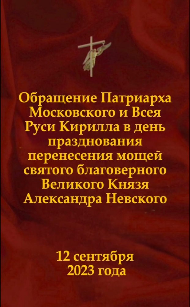 Обращение Патриарха Московского и Всея Руси Кирилла в день празднования перенесения мощей святого благоверного Великого князя Александра Невского. 12 сентября 2023 года