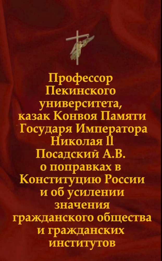 Профессор Пекинского университета, казак Конвоя Памяти Государя Императора Николая II Посадский А.В. о поправках в Конституцию России и об усилении значения гражданского общества и гражданских институтов