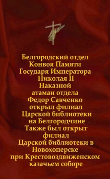 Белгородский отдел Конвоя Памяти Государя Императора Николая II. Наказной атаман отдела Федор Савченко открыл филиал Царской библиотеки на Белгородчине. Также был открыт филиал Царской библиотеки в Новохоперске при Крестовоздвиженском казачьем соборе