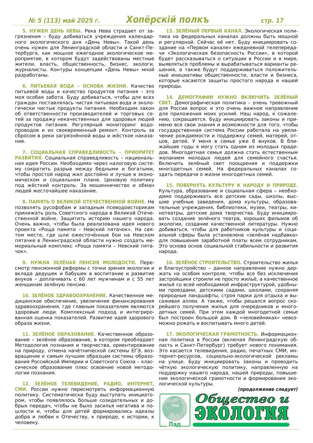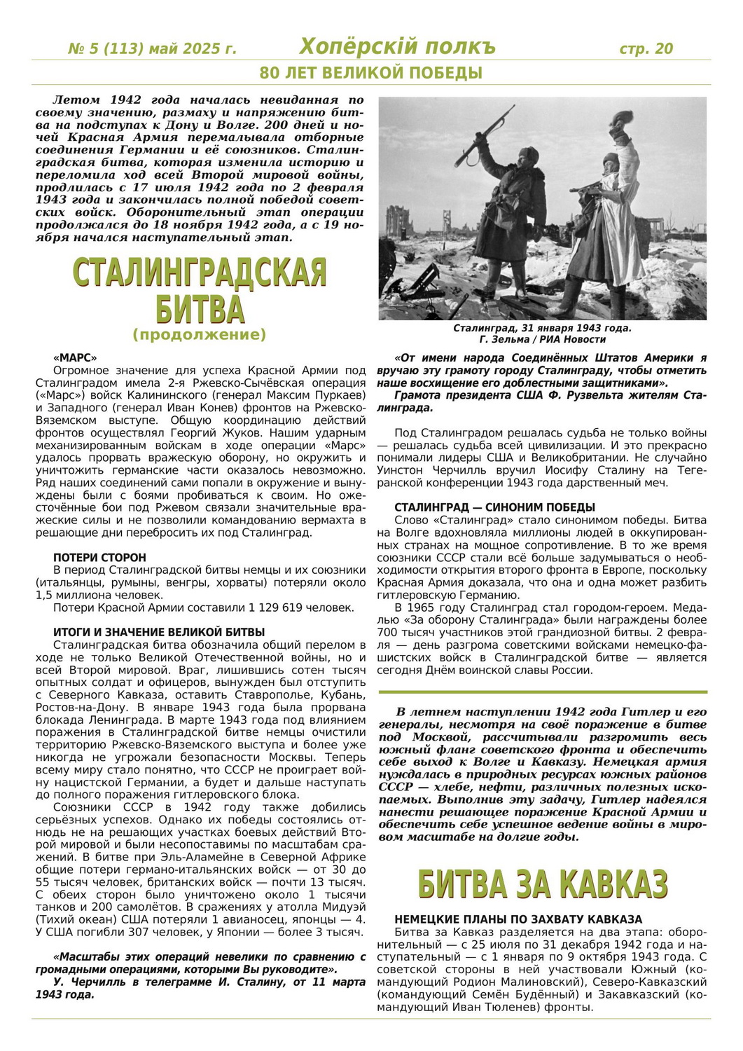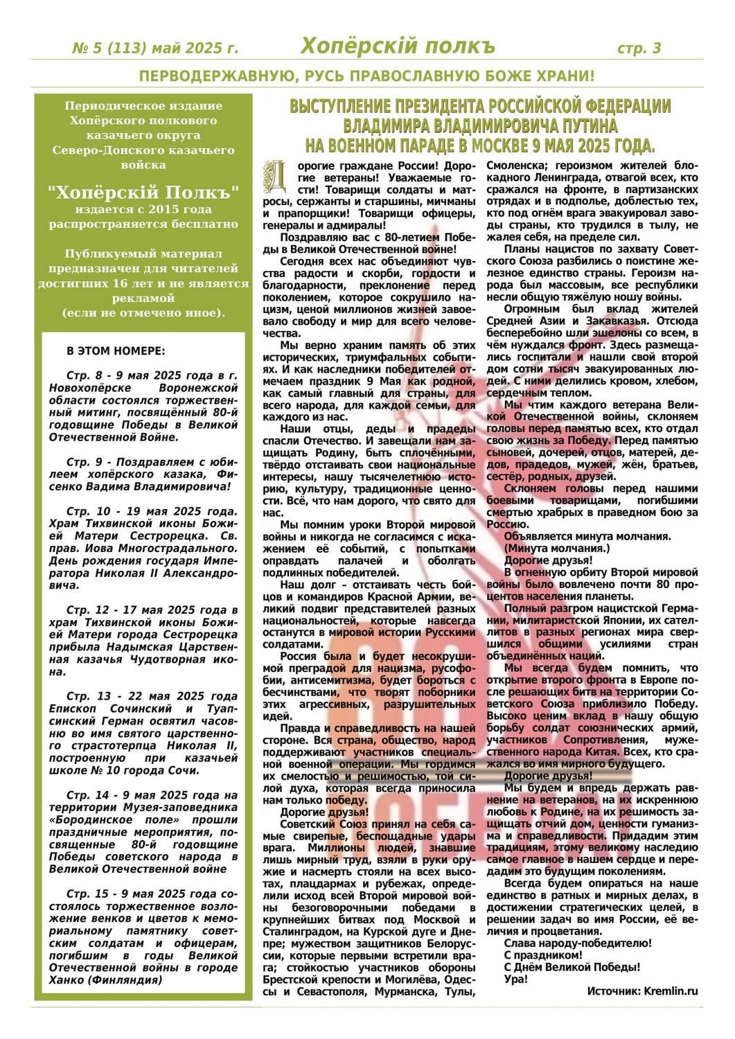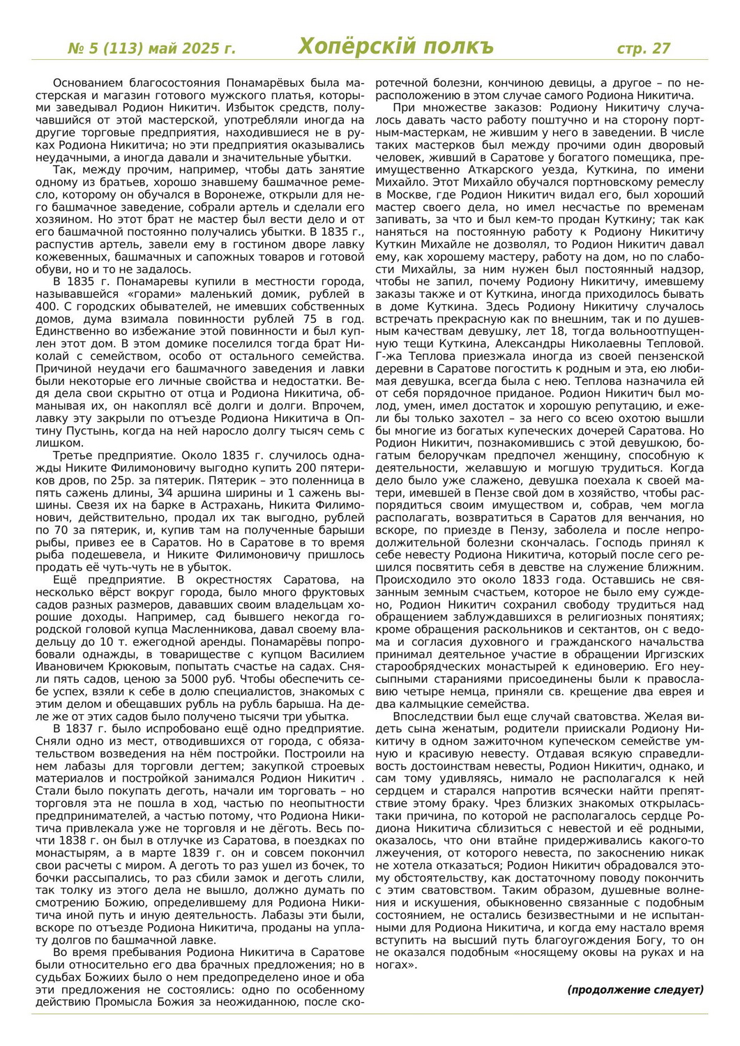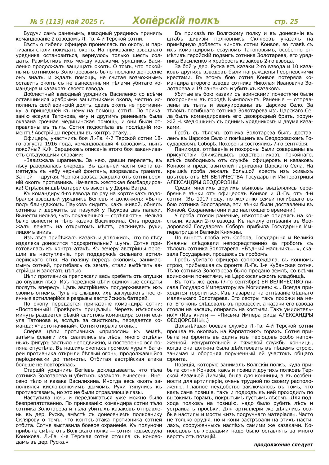 Журнал «Хоперскiй полкъ» выпуск №5 (113) май 2025 года