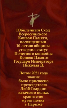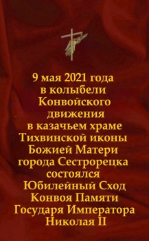 9 мая 2021 года в колыбели Конвойского движения в казачьем храме Тихвинской иконы Божией Матери города Сестрорецка состоялся Юбилейный Сход Конвоя Памяти Государя Императора Николая II