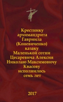 Крестнику архимандрита Гавриила (Коневиченко) казаку Маленькой сотни Цесаревича Алексия Николаю Максимовичу Квасову исполнилось семь лет. 2017