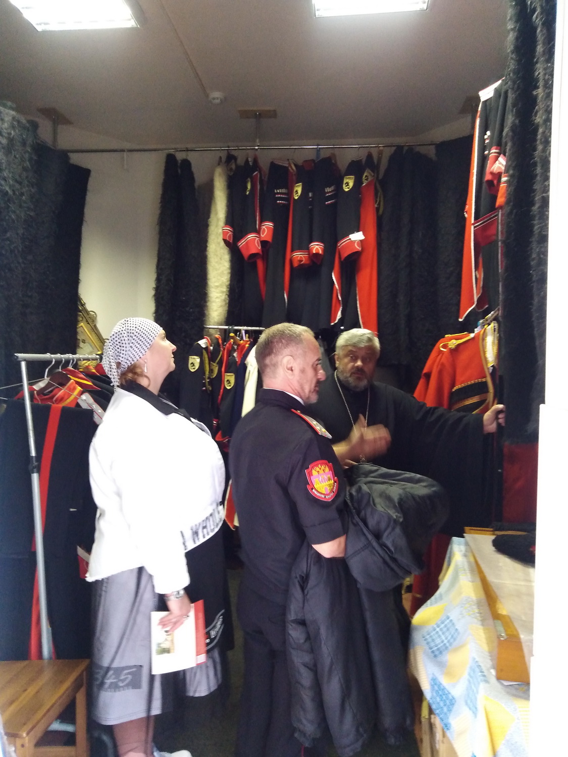 В Мемориале памяти мученического подвига Царской Семьи «Расстрельная комната» батюшка вручил гостям буклеты «Расстрельная комната», открытки «Преисподняя Ипатьевского дома» и рассказал об истории написания картины художником Александром Левченковым, казаком Конвоя Памяти Государя Императора Николая II.