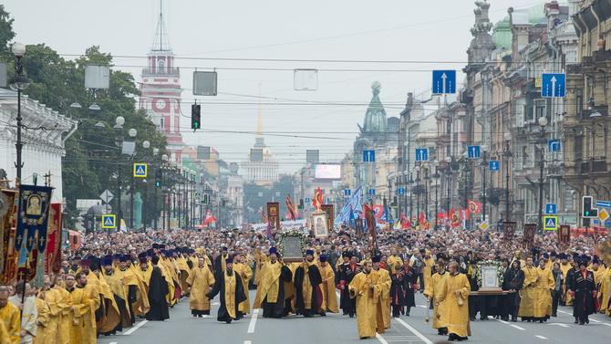 После окончания Божественной литургии митрополит Варсонофий возглавил молитвенной шествие от Казанского собора до Свято-Троицкой Александро-Невской лавры по Невскому проспекту. По главной магистрали города были пронесены Казанская икона Божией Матери и образ Богородицы «Панагия Сумела».